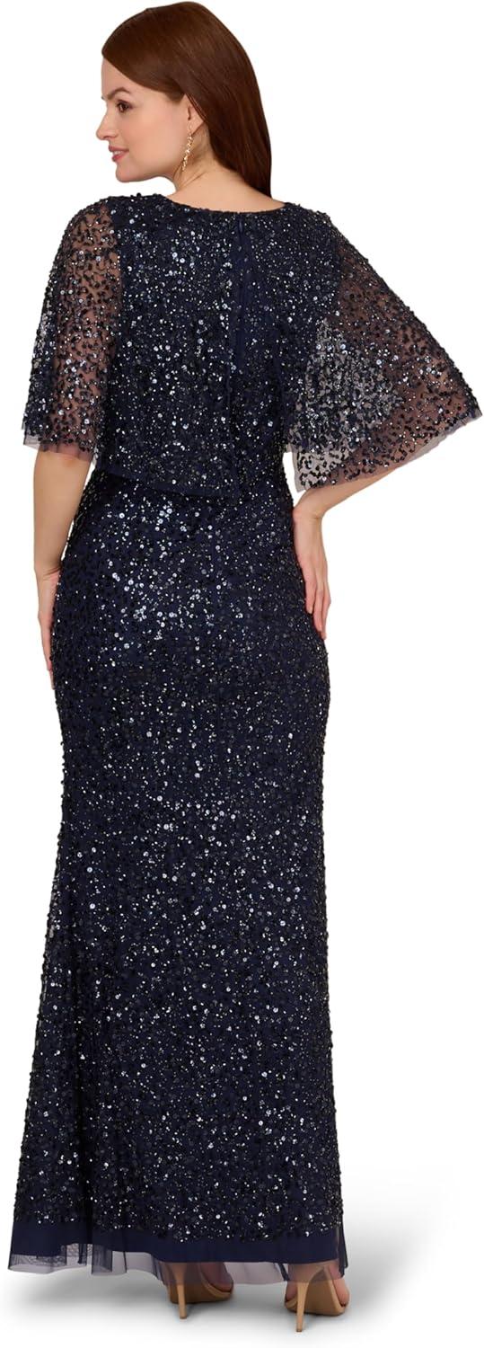 • Adrianna Papell Womens Bead Mesh Cape Long Dress(Light Navy)