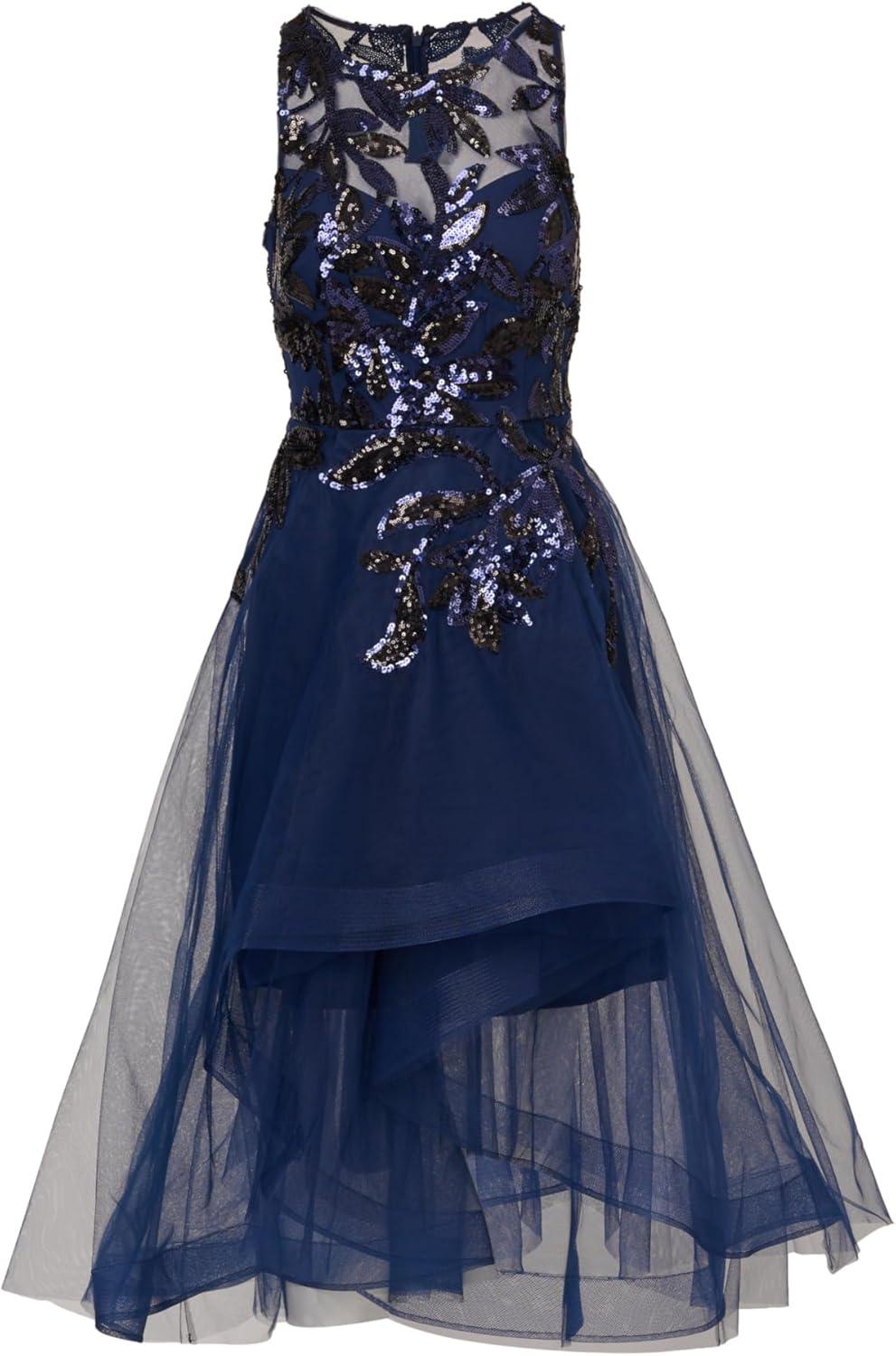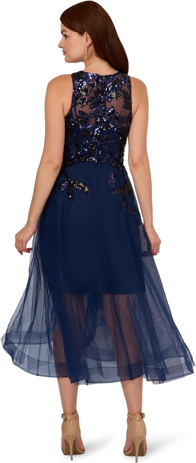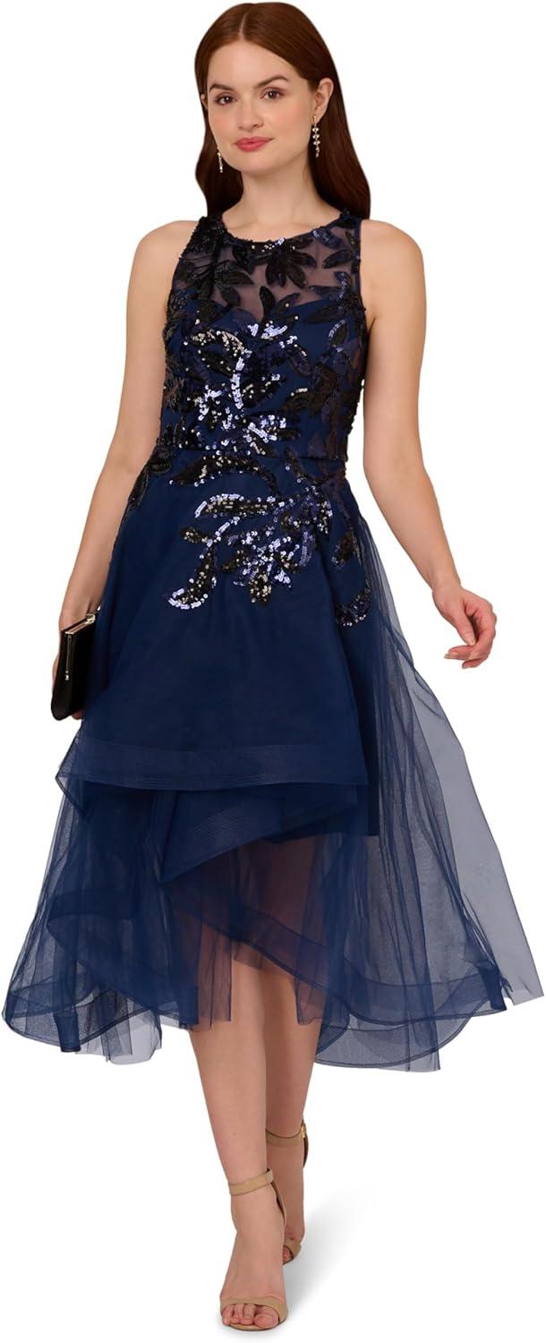 Adrianna Papell Women’s Sequin Combo High-Low Dress(Navy/Black)