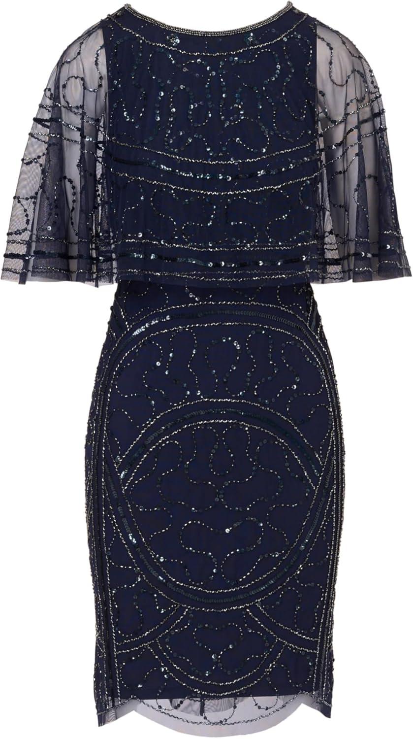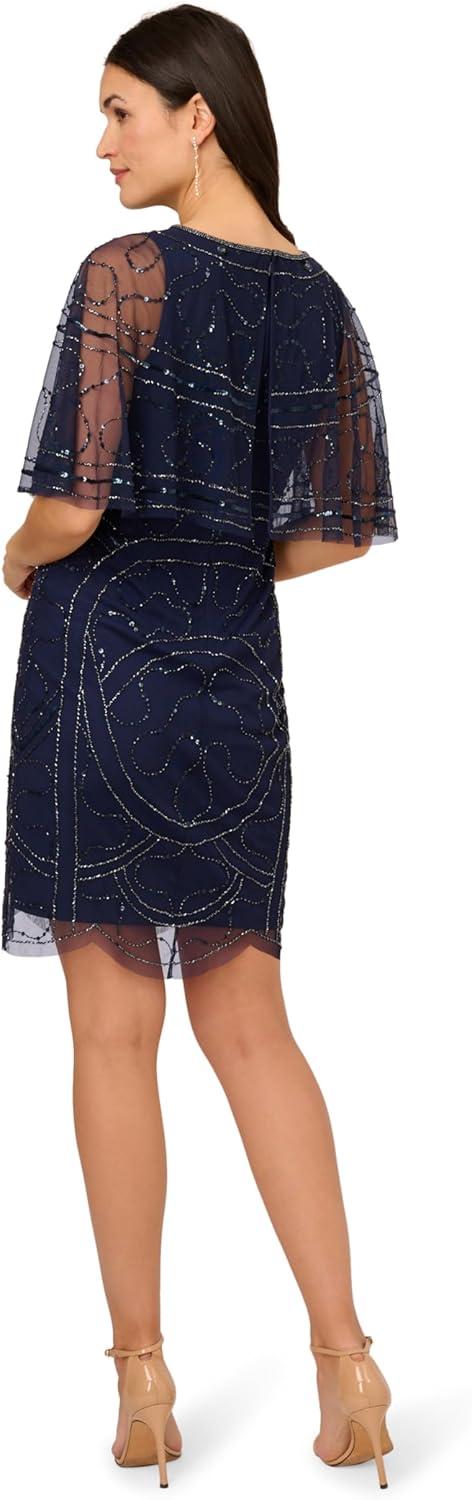 Adrianna Papell Womens Bead Mesh Popover Dress(Light Navy)