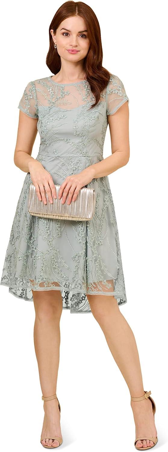 • Adrianna Papell Women’s Sequin Embroidery Dress(Icy Sage)