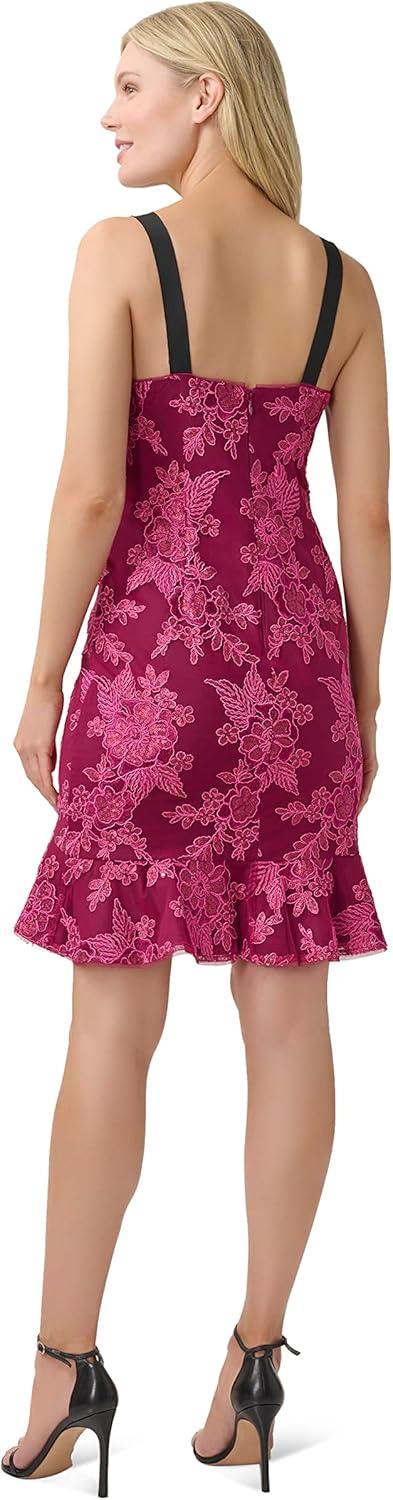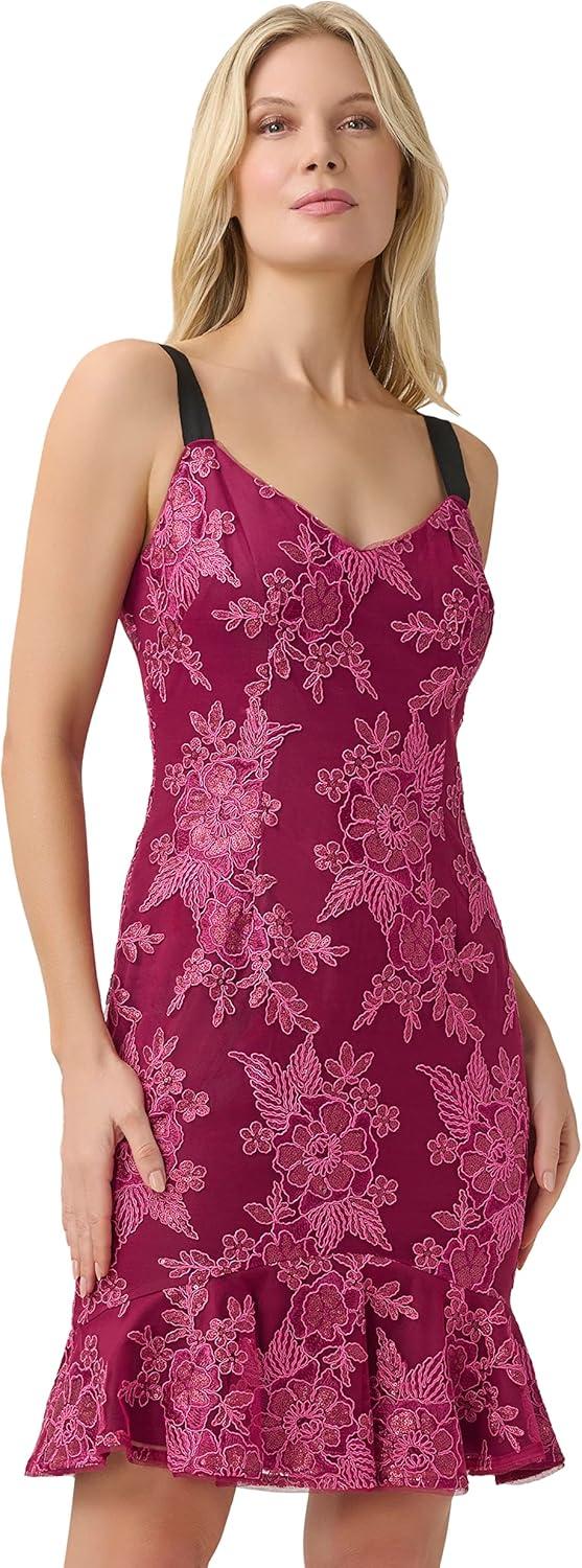 Adrianna Papell Women’s Sequin Embroidery Dress(Magenta)