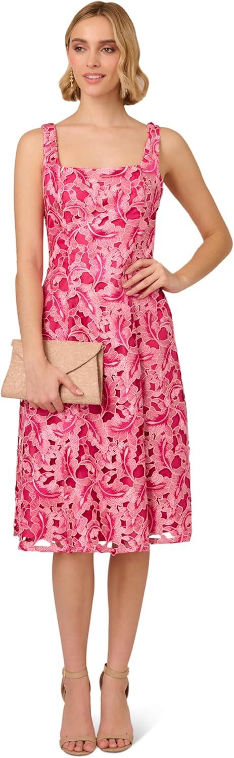 Adrianna Papell Women’s Tonal Lace Short Dress(Electric Pink)