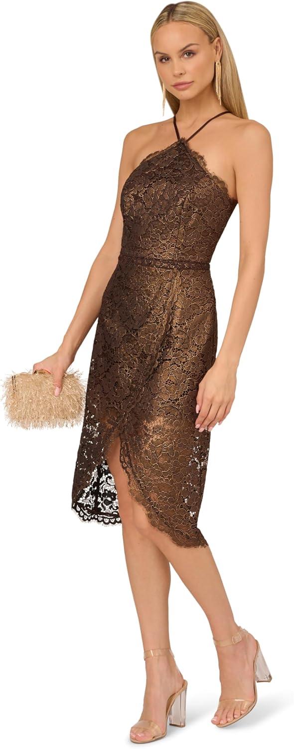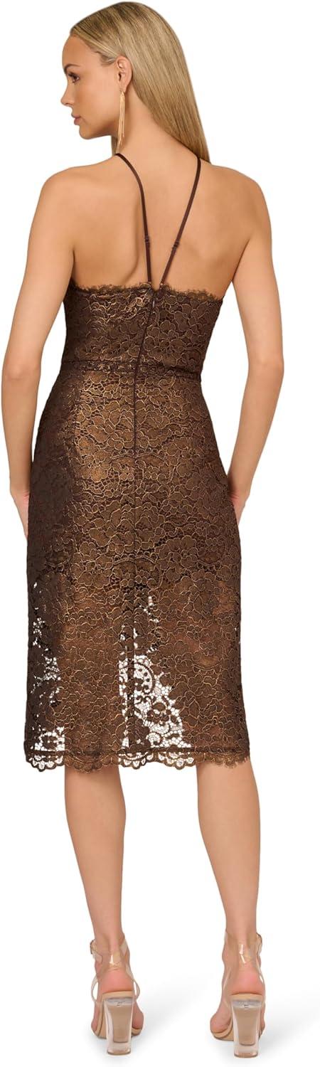 Adrianna Papell Womens Foil Lace Halter Dress(Bronze)