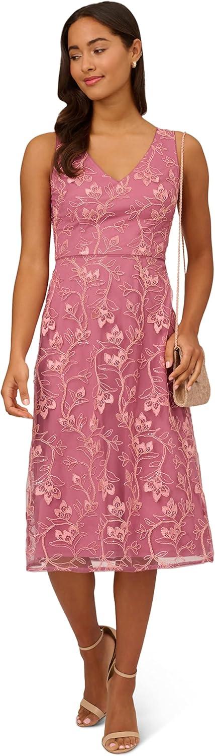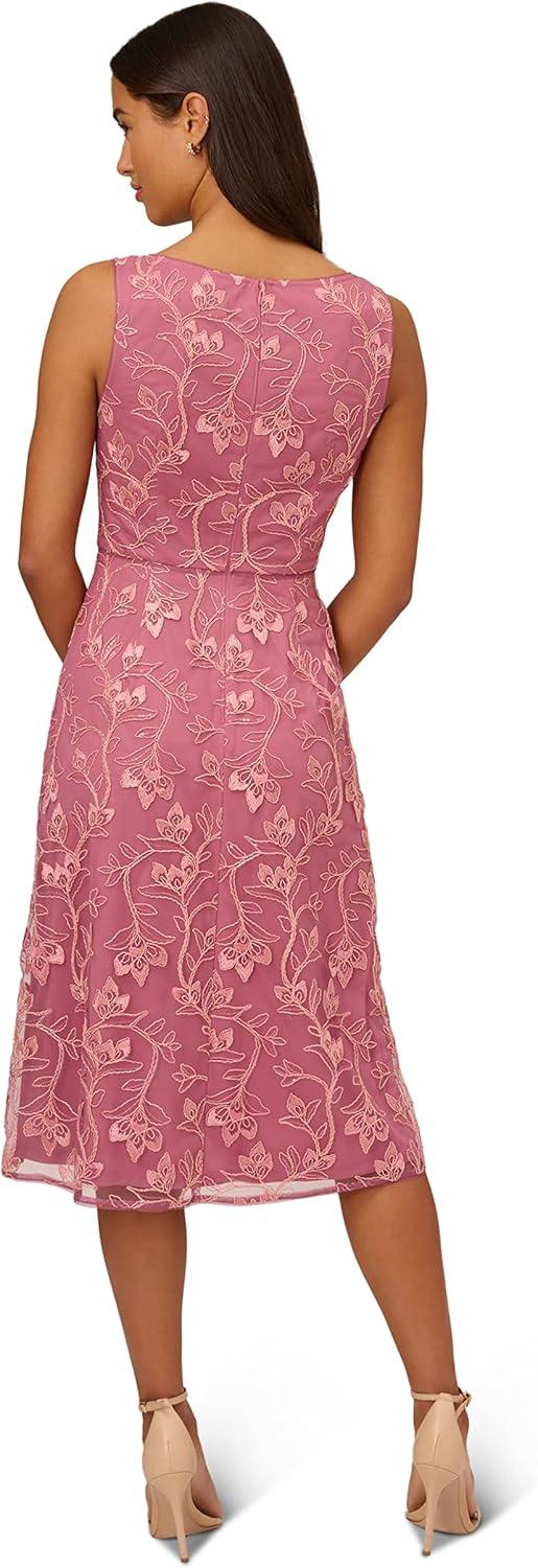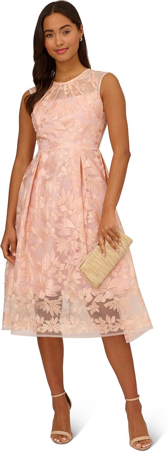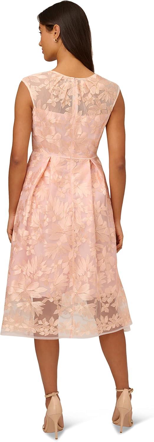 Adrianna Papell Womens Embroidered Midi Fit and Flare(Apricot Ice)