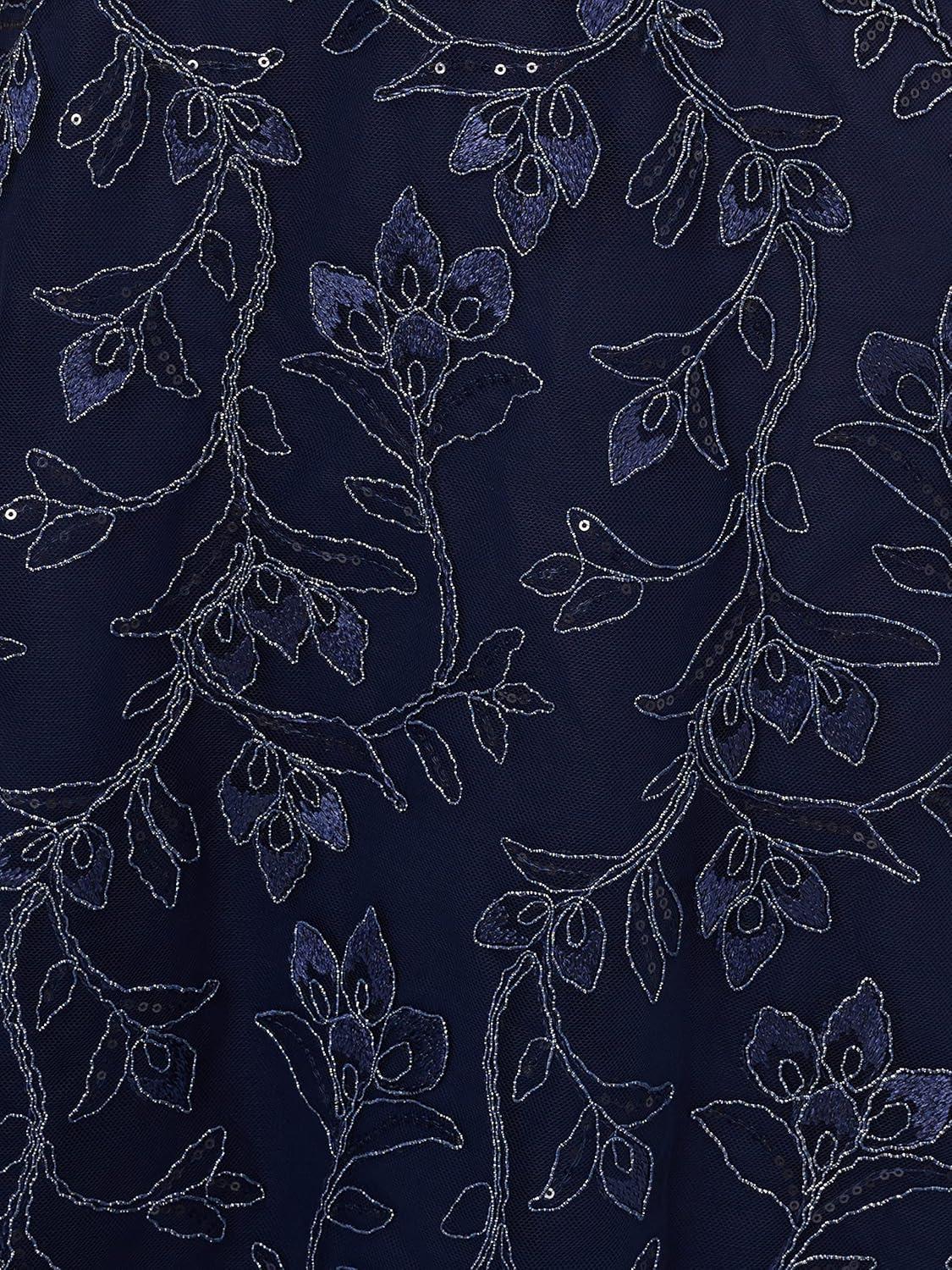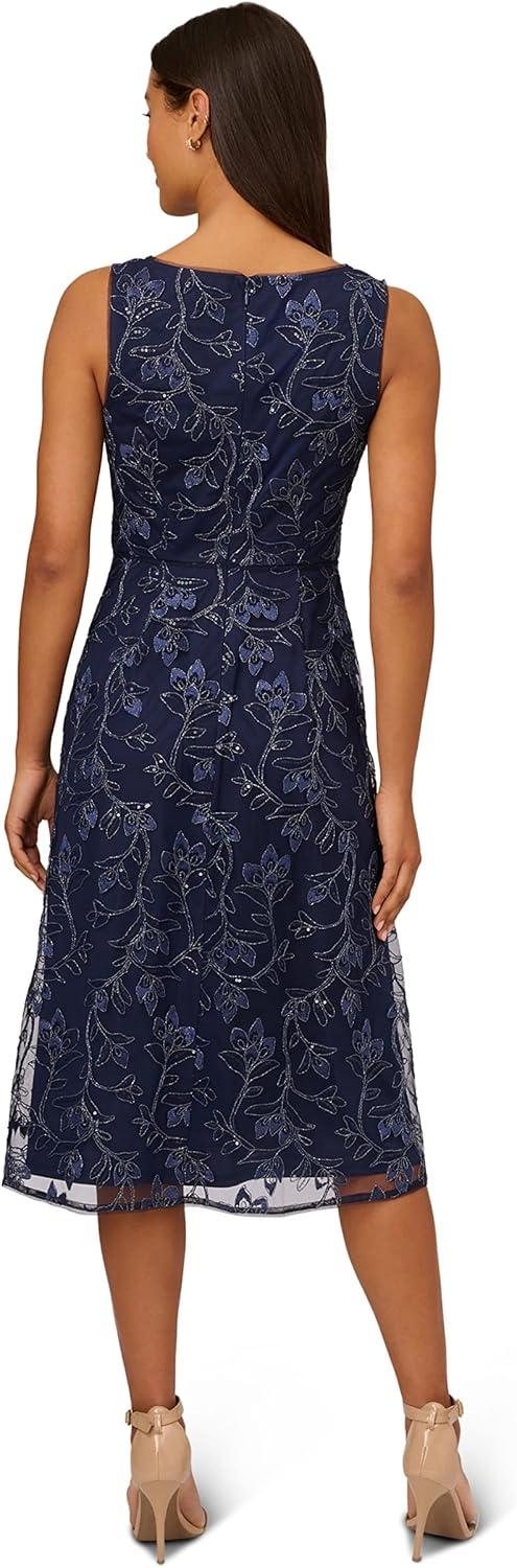 Adrianna Papell Womens Floral Sequin Embroidery Dress(Light Navy)