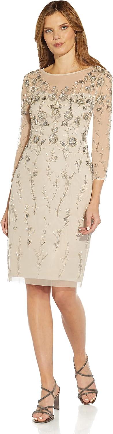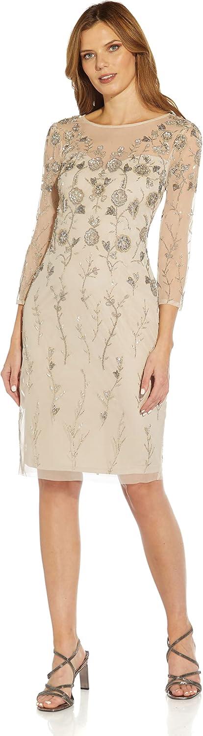 Adrianna Papell Women’s Beaded Sheath Dress(Biscotti)