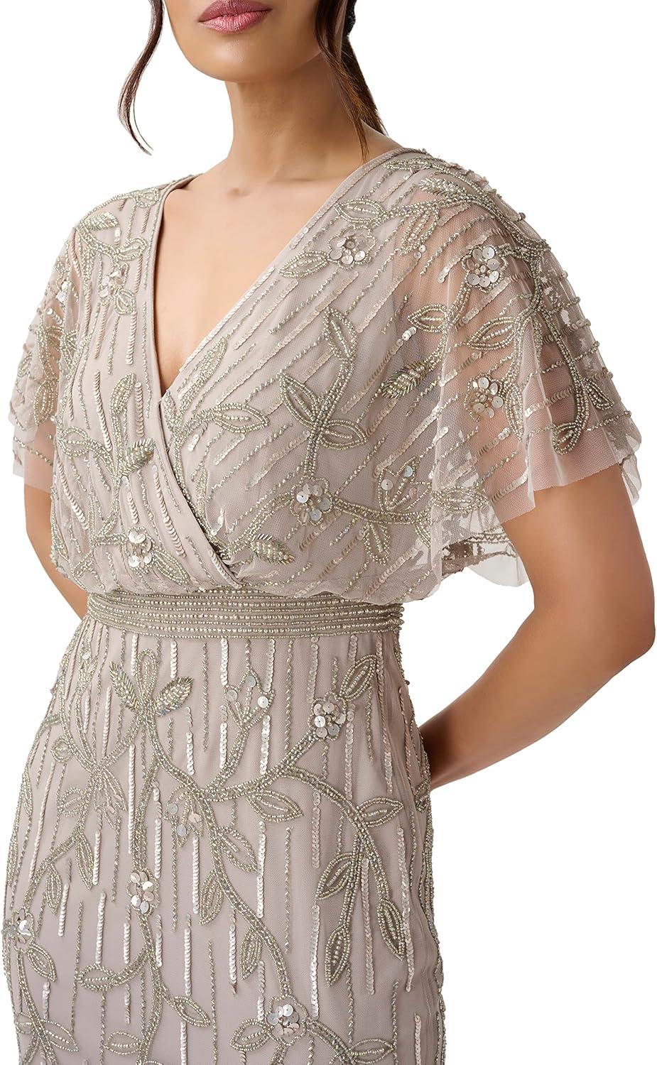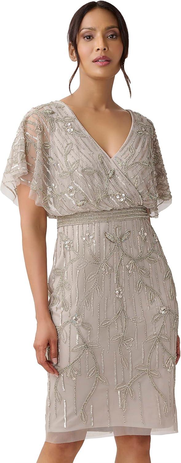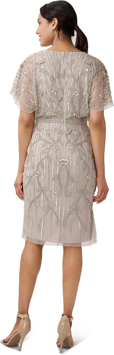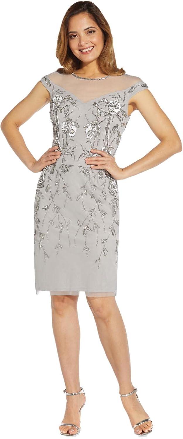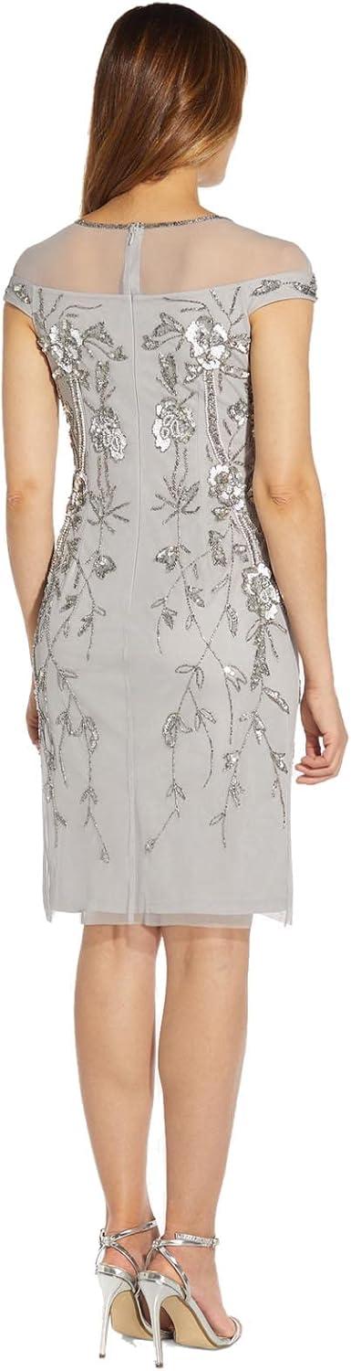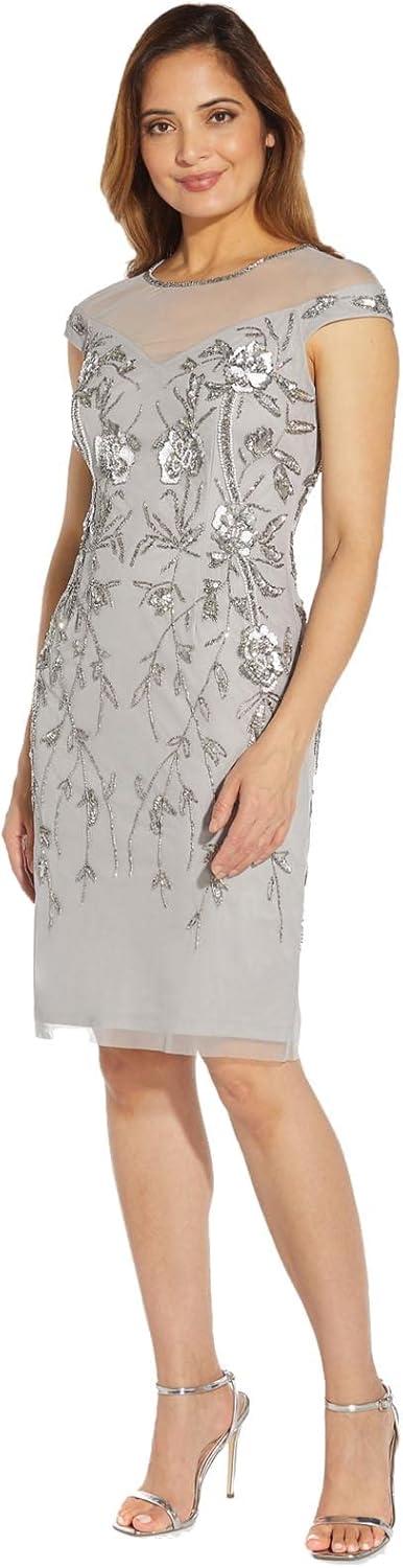 Adrianna Papell Women’s Beaded Short Dress(Bridal Silver)