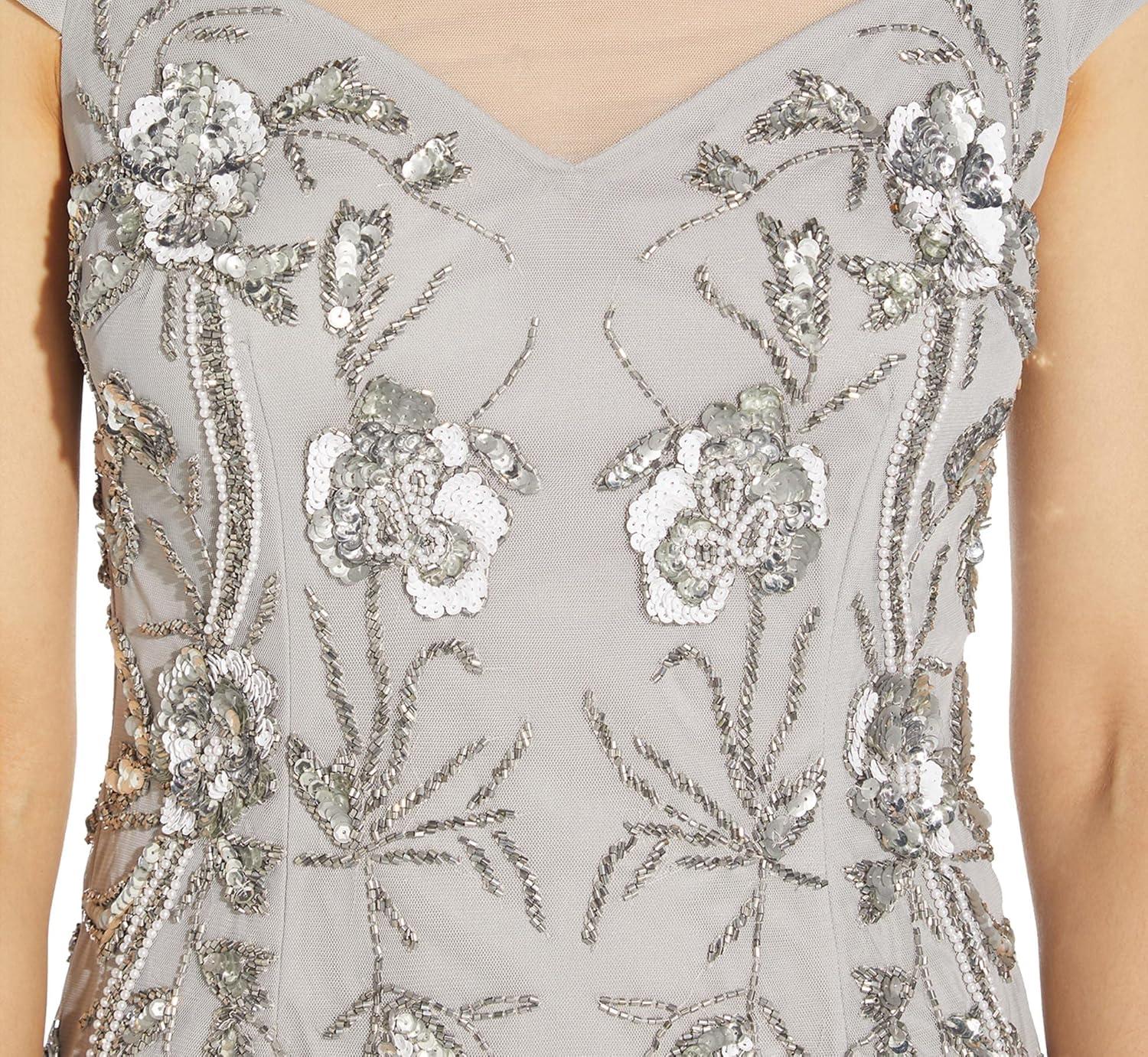 Adrianna Papell Women’s Beaded Floral Short Dress(Gunmetal)