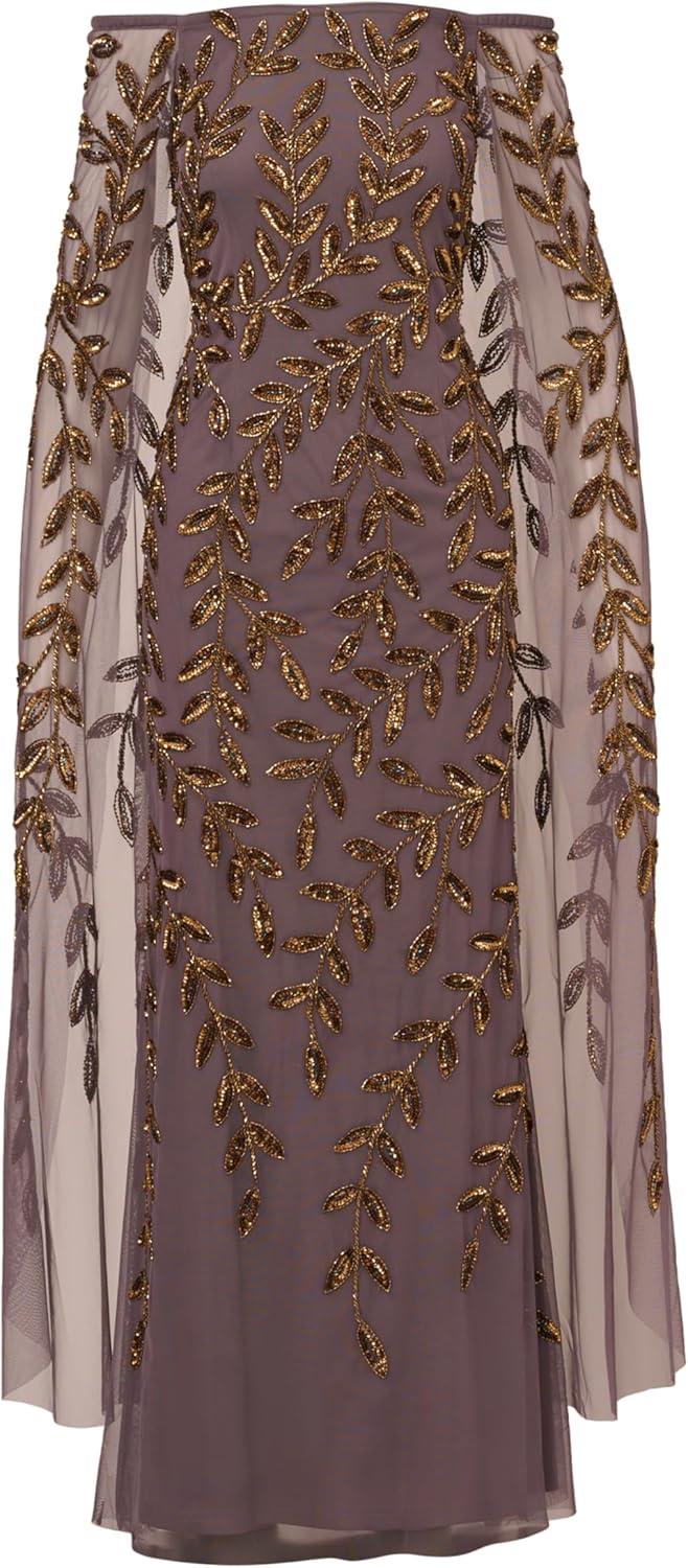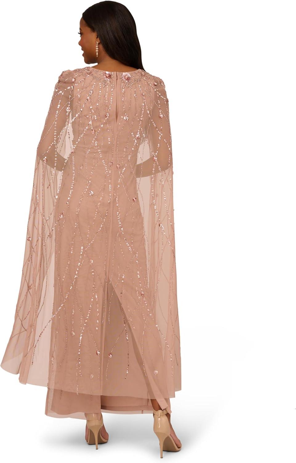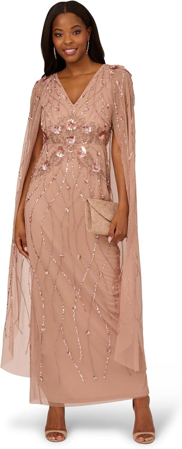 Adrianna Papell Women’s Beaded Cape Long Dress(Rose Gold)