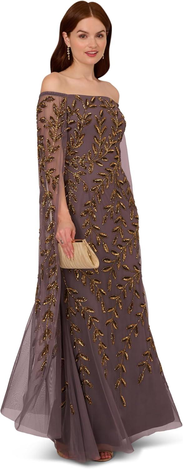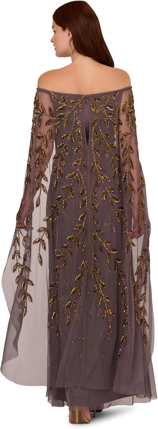 Adrianna Papell Women’s Bead Cape Long Dress(Moonscape)