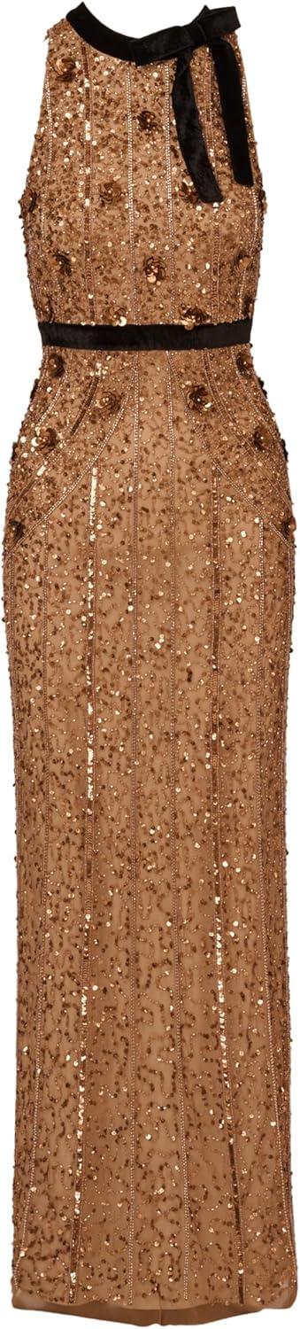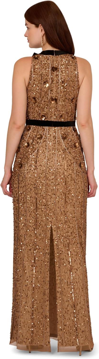 Adrianna Papell Women’s Beaded Halter Long Dress(Copper)
