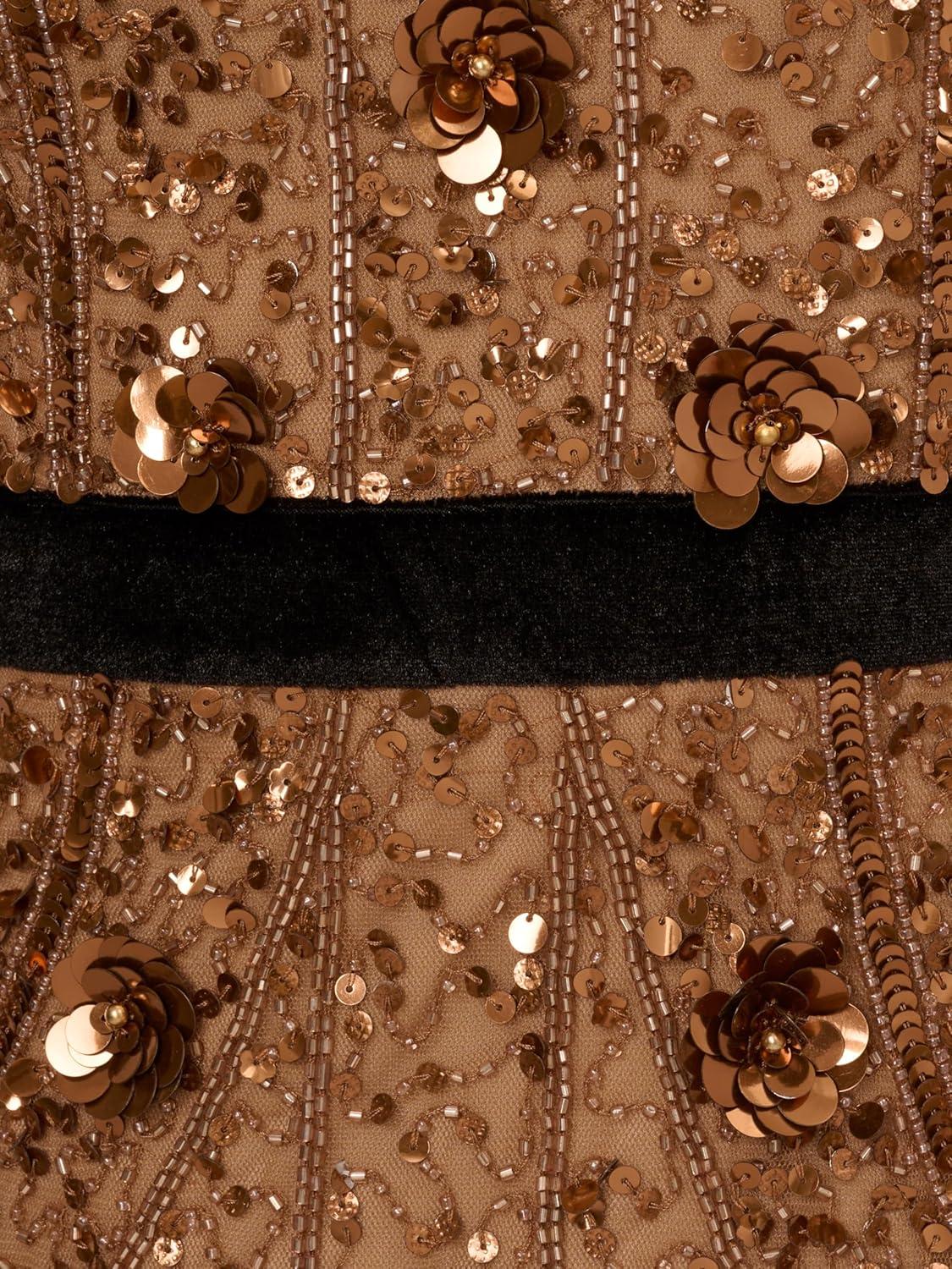 Adrianna Papell Women’s Bead Crepe Shift Dress(Midnight/Rosegold)
