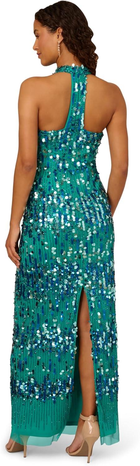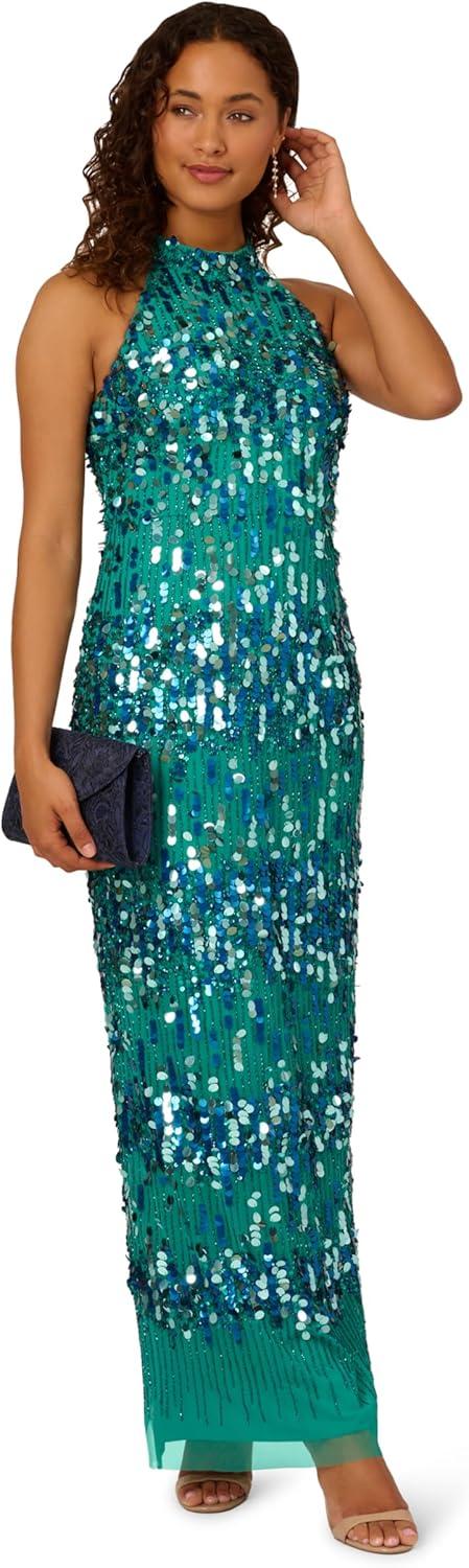 Adrianna Papell Women’s Beaded Halter Long Dress(Exotic Jade)