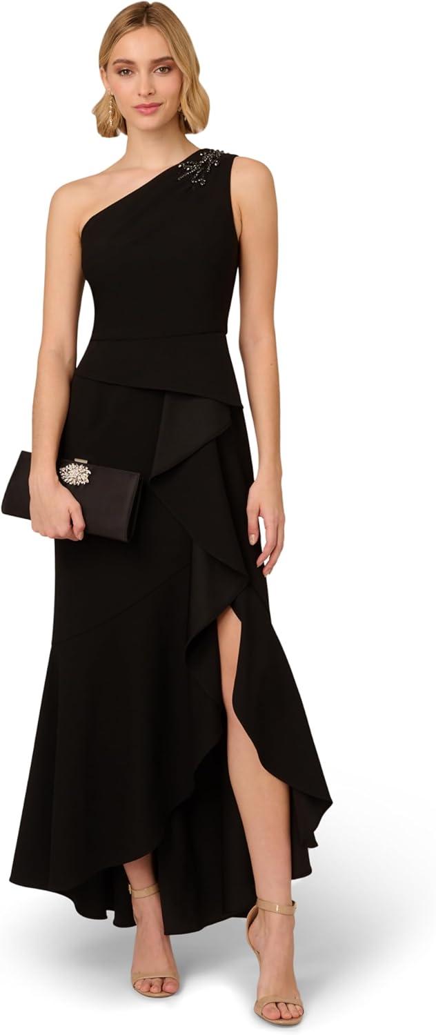 Adrianna Papell Women’s Beaded Knit Crepe Gown(Black)