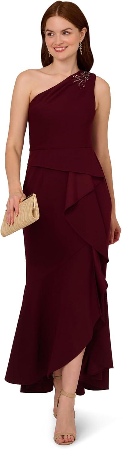 Adrianna Papell Women’s Beaded Knit Crepe Gown(Blackened Red)