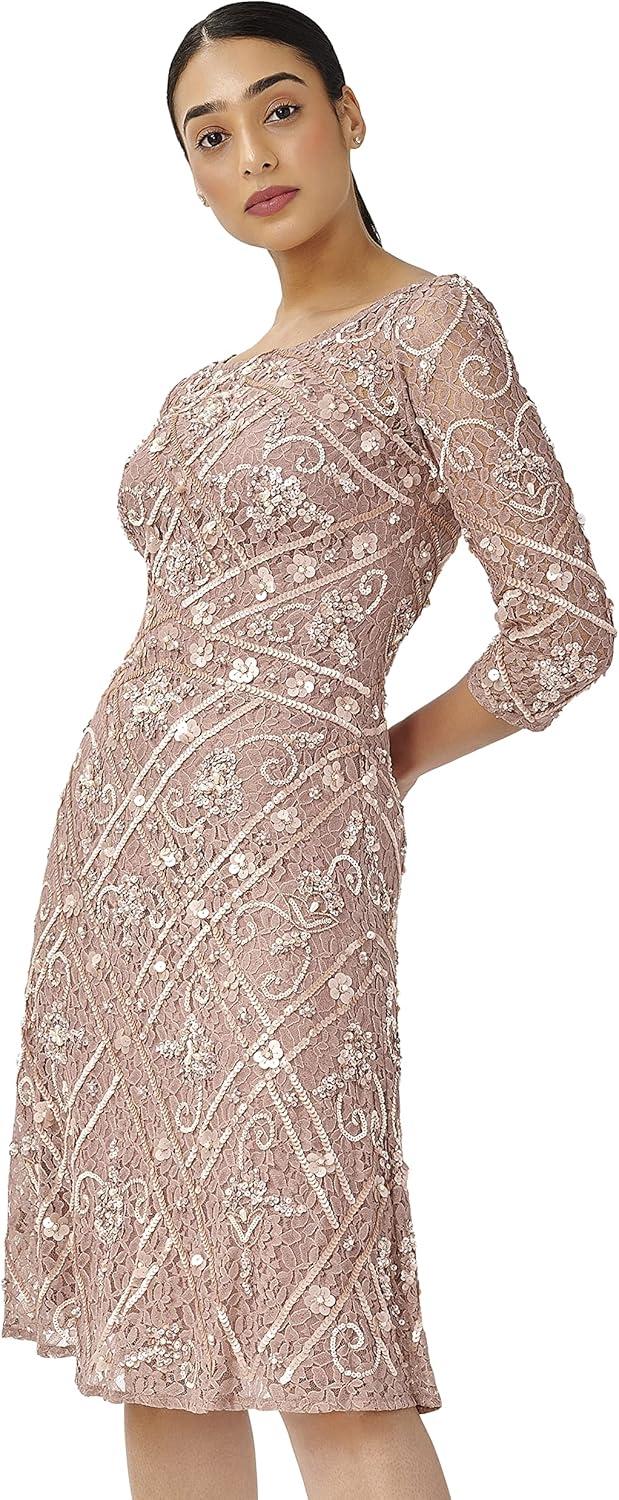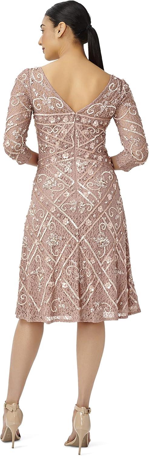 Adrianna Papell Women’s Beaded Fit and Flare Dress(Rose Quartz)
