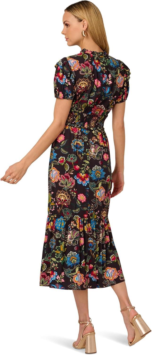 Adrianna Papell Womens Printed Midi Dress(Black Multi)