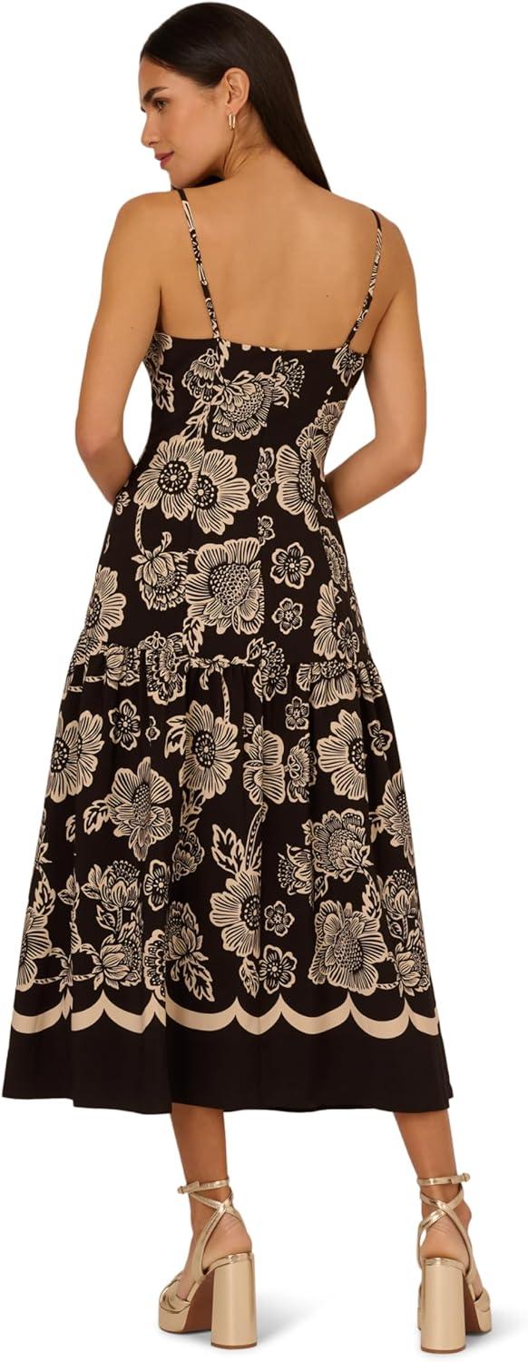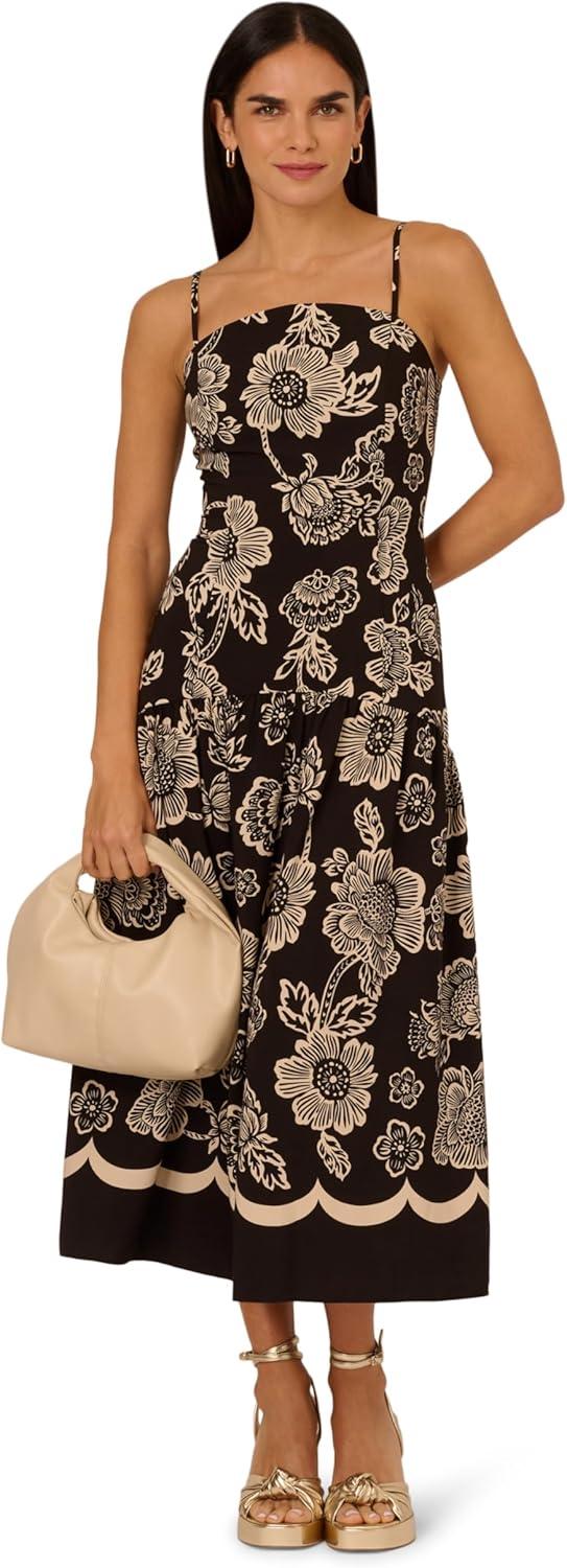 Adrianna Papell Womens Printed Midi Dress(Black/Ivory)