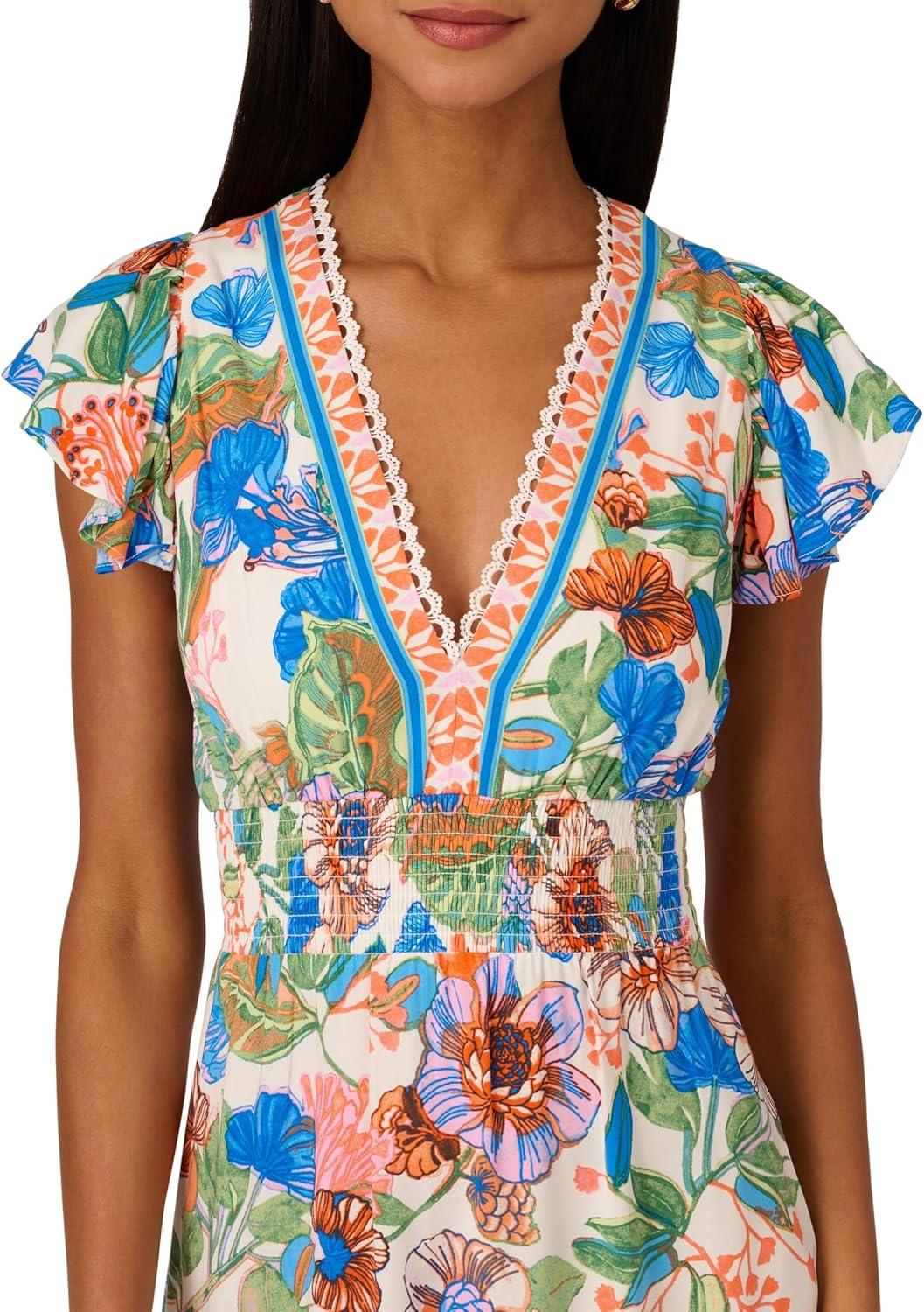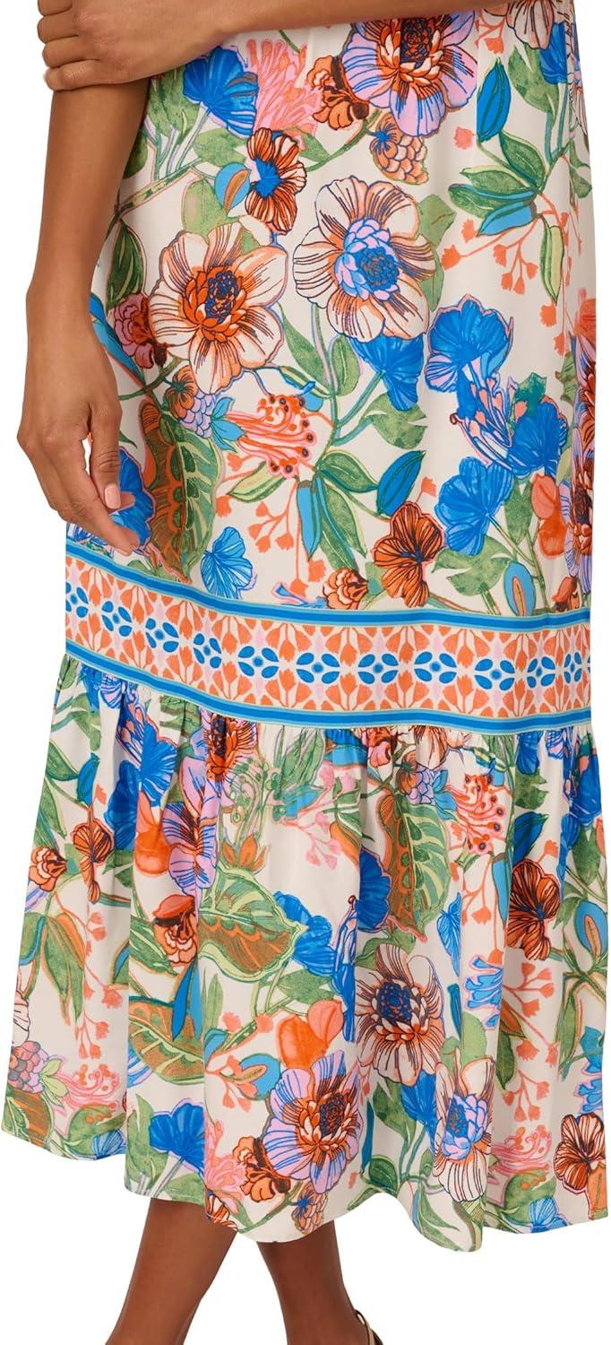 Adrianna Papell Womens Printed Midi Dress(Orange Multi)