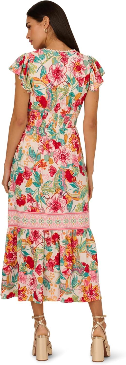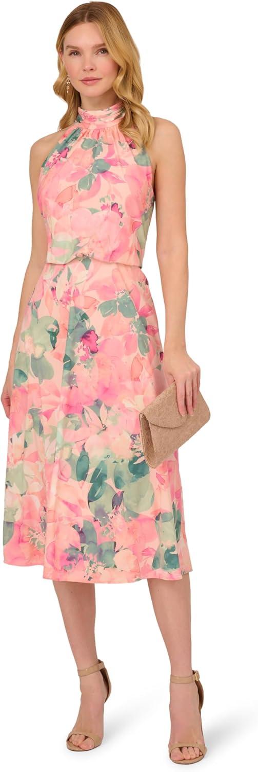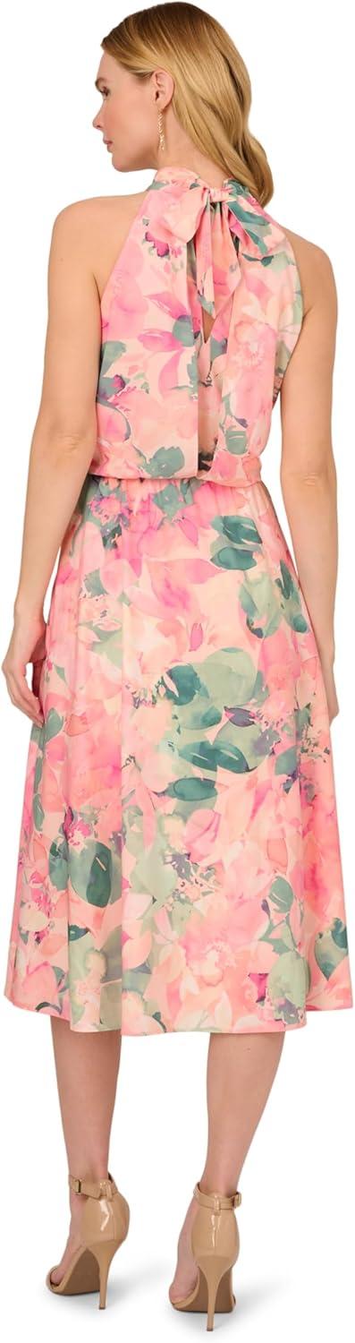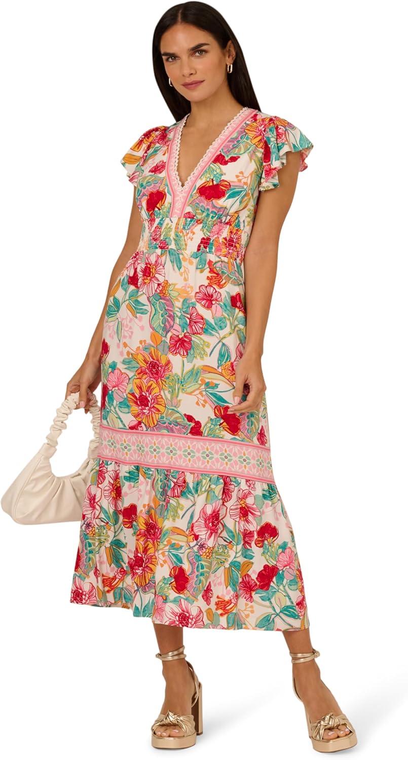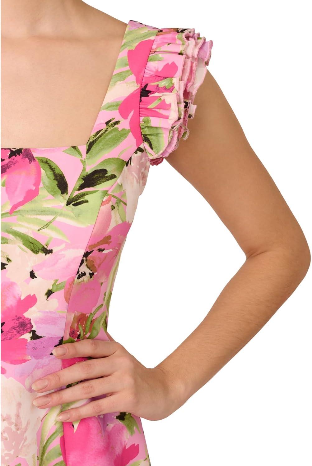 Adrianna Papell Womens Printed Midi Dress(Pink-green Multi)