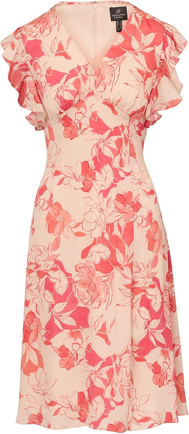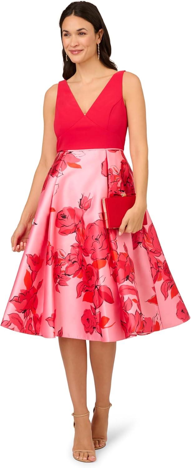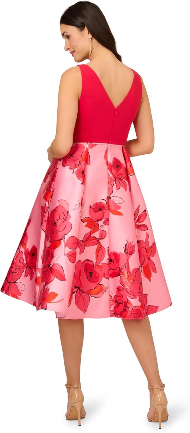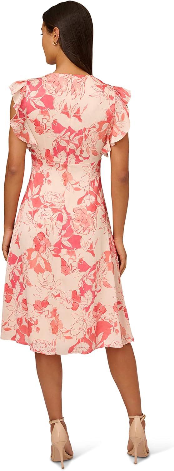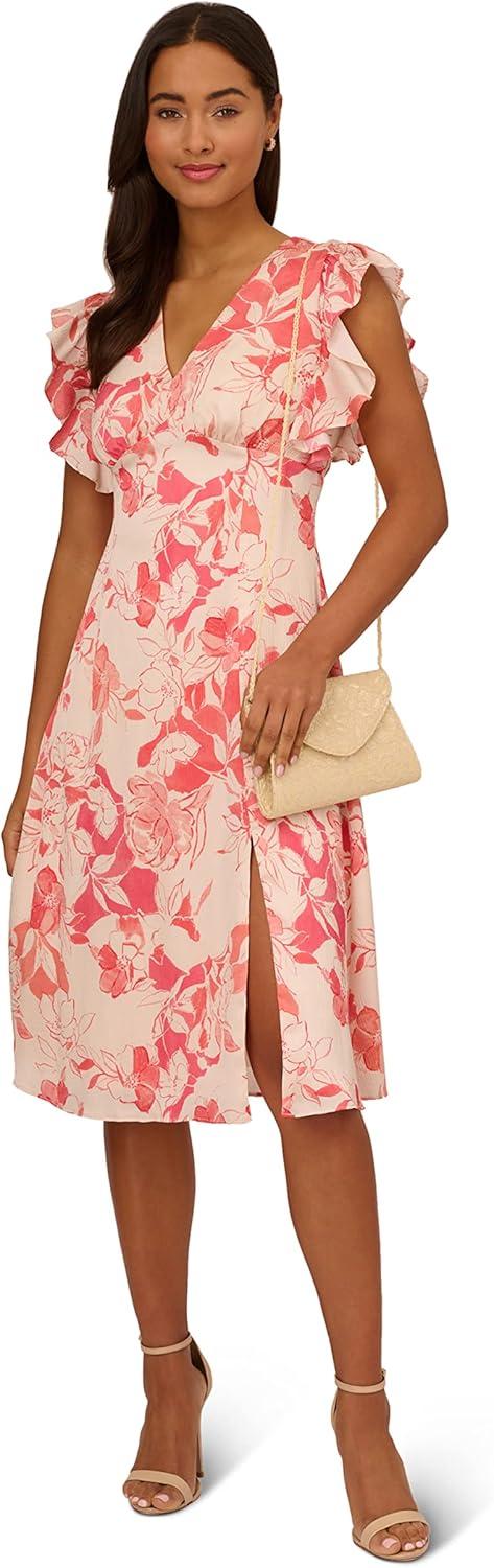 Adrianna Papell Womens Printed Midi Dress(Pink/Red Multi)
