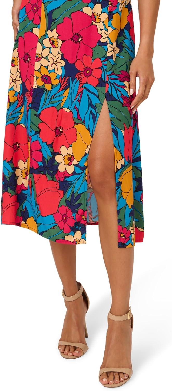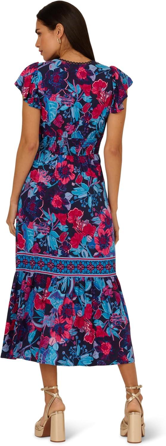 Adrianna Papell Womens Printed Midi Dress(Navy/Pink Multi)