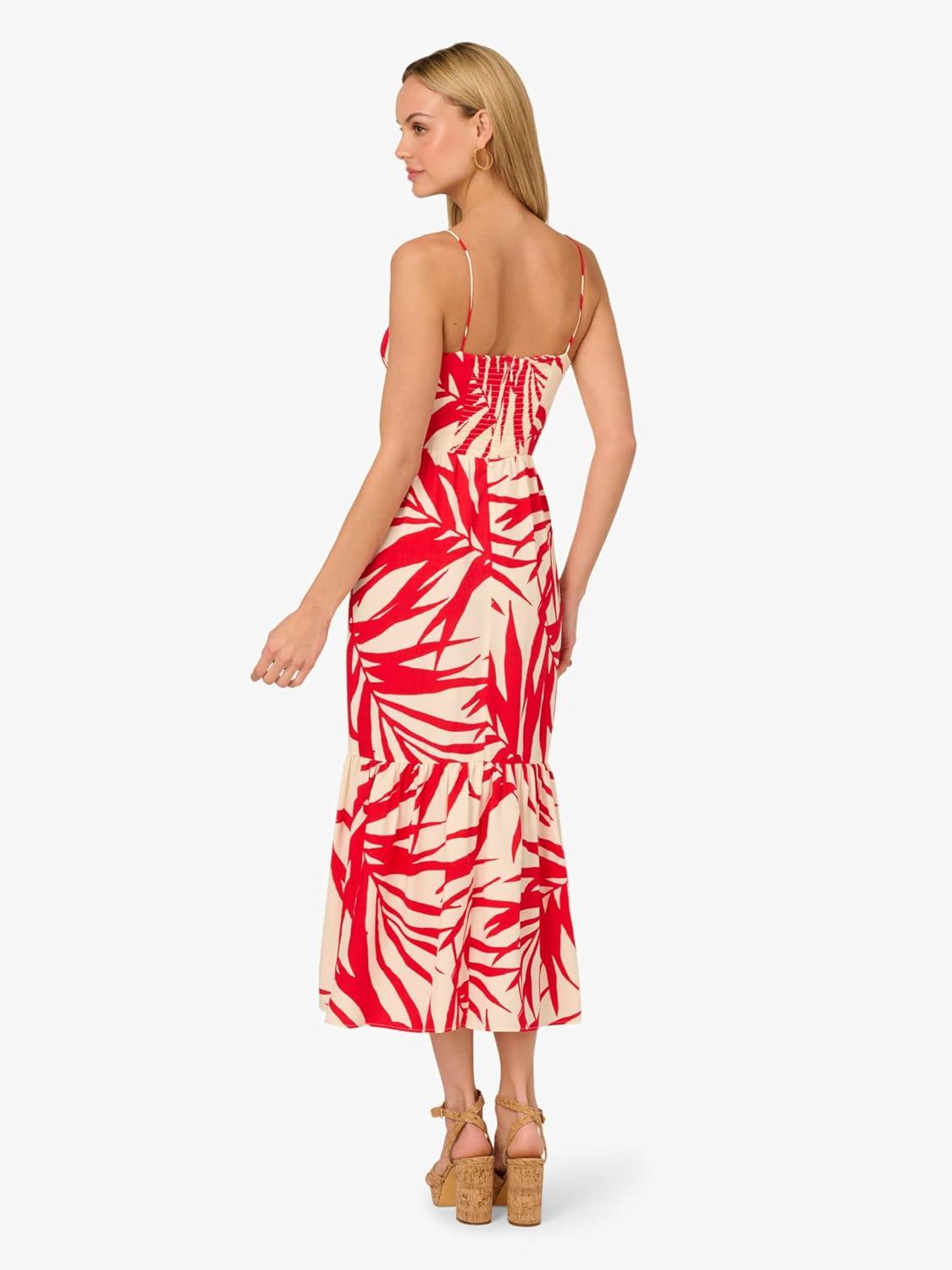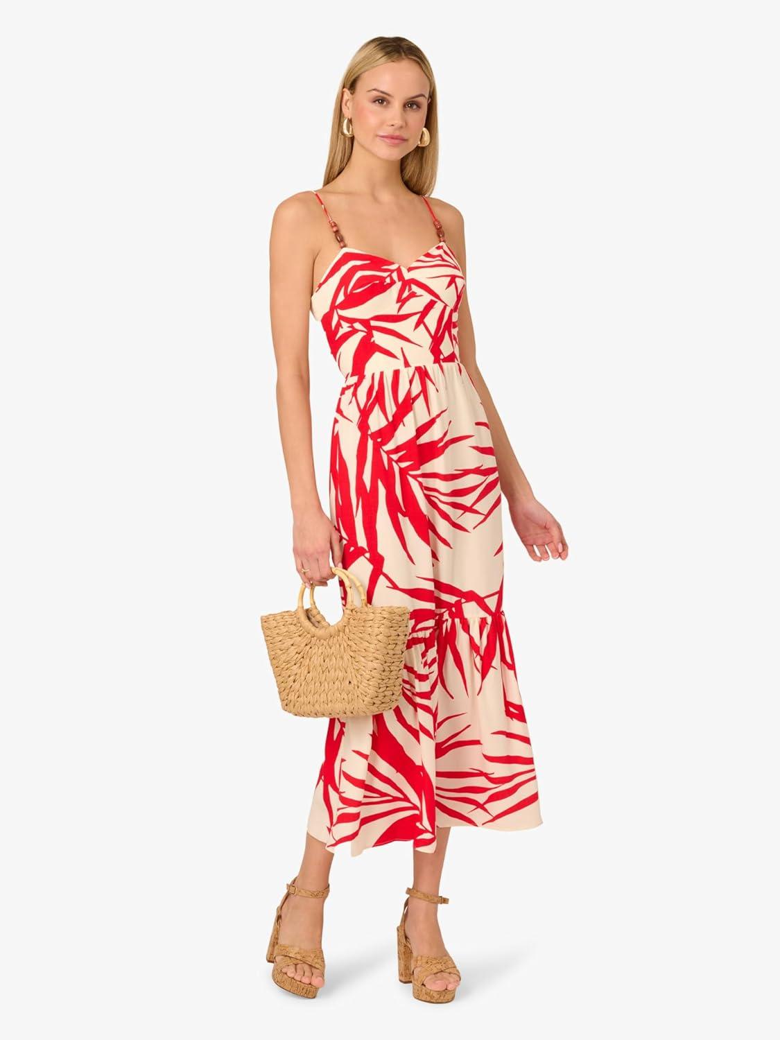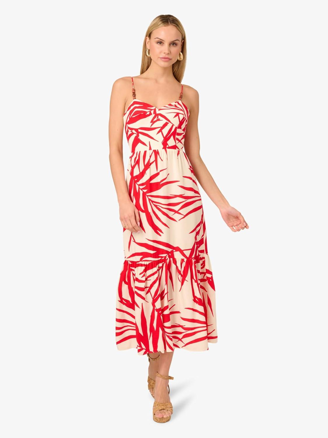 Adrianna Papell Womens Printed Midi Dress(Red/Ivory)