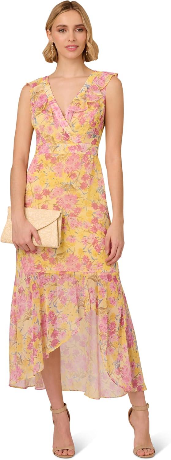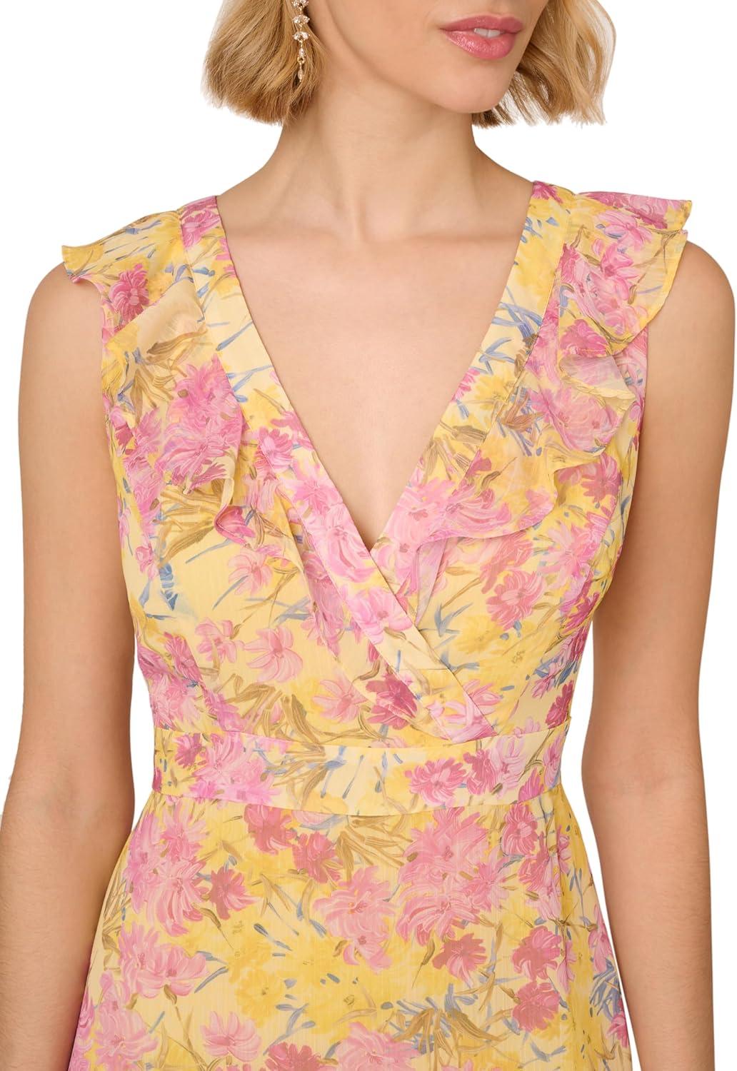 Adrianna Papell Womens Printed Midi Dress(Yellow Multi)