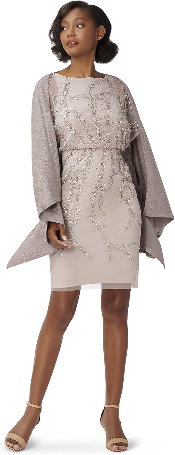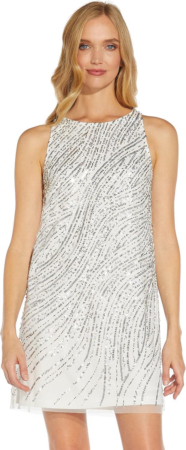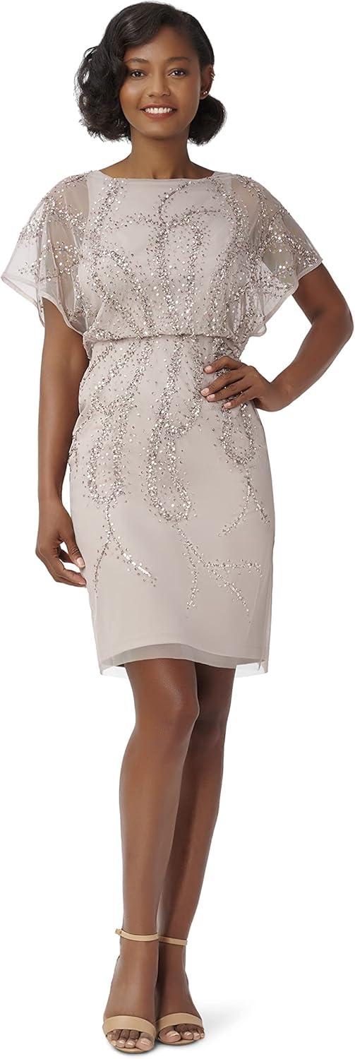 Adrianna Papell Women’s Beaded Short Sheath Dress(Marble)