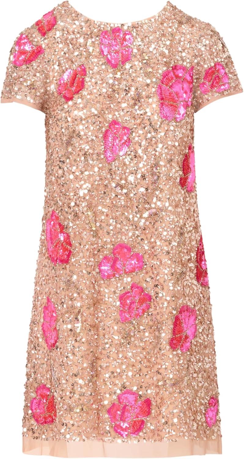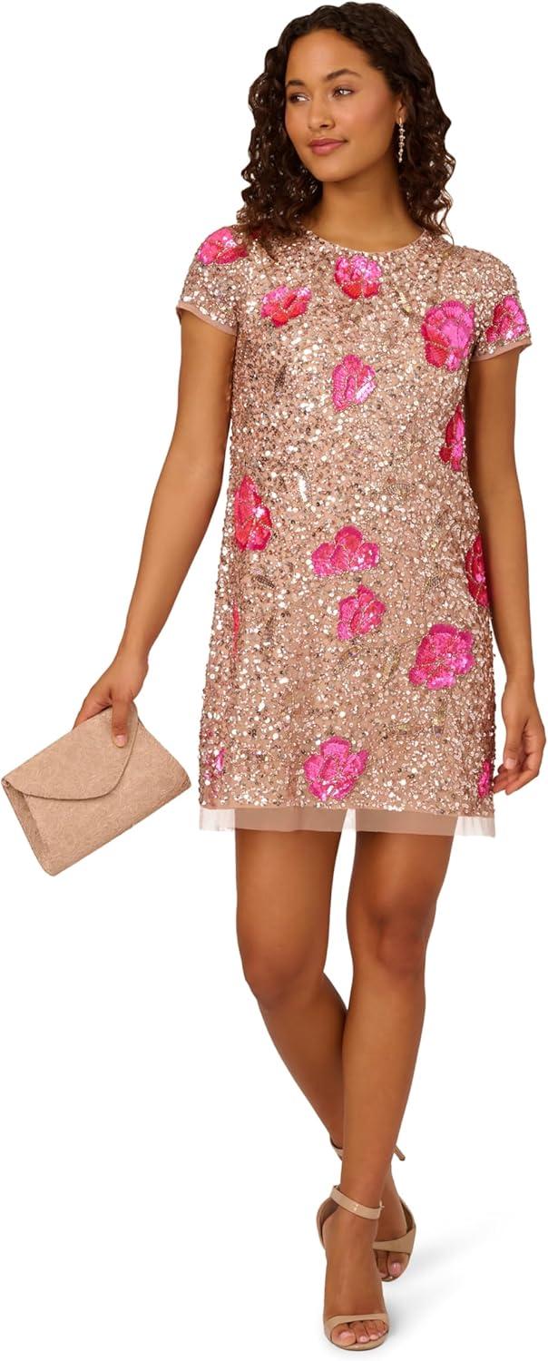 Adrianna Papell Women’s Beaded Trapeze Dress(Rosegold/Hot Pink)