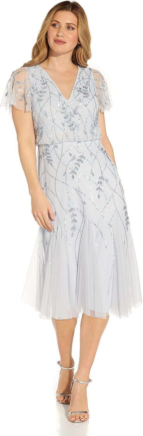 Adrianna Papell Women’s Beaded Midi Dress(Serenity)