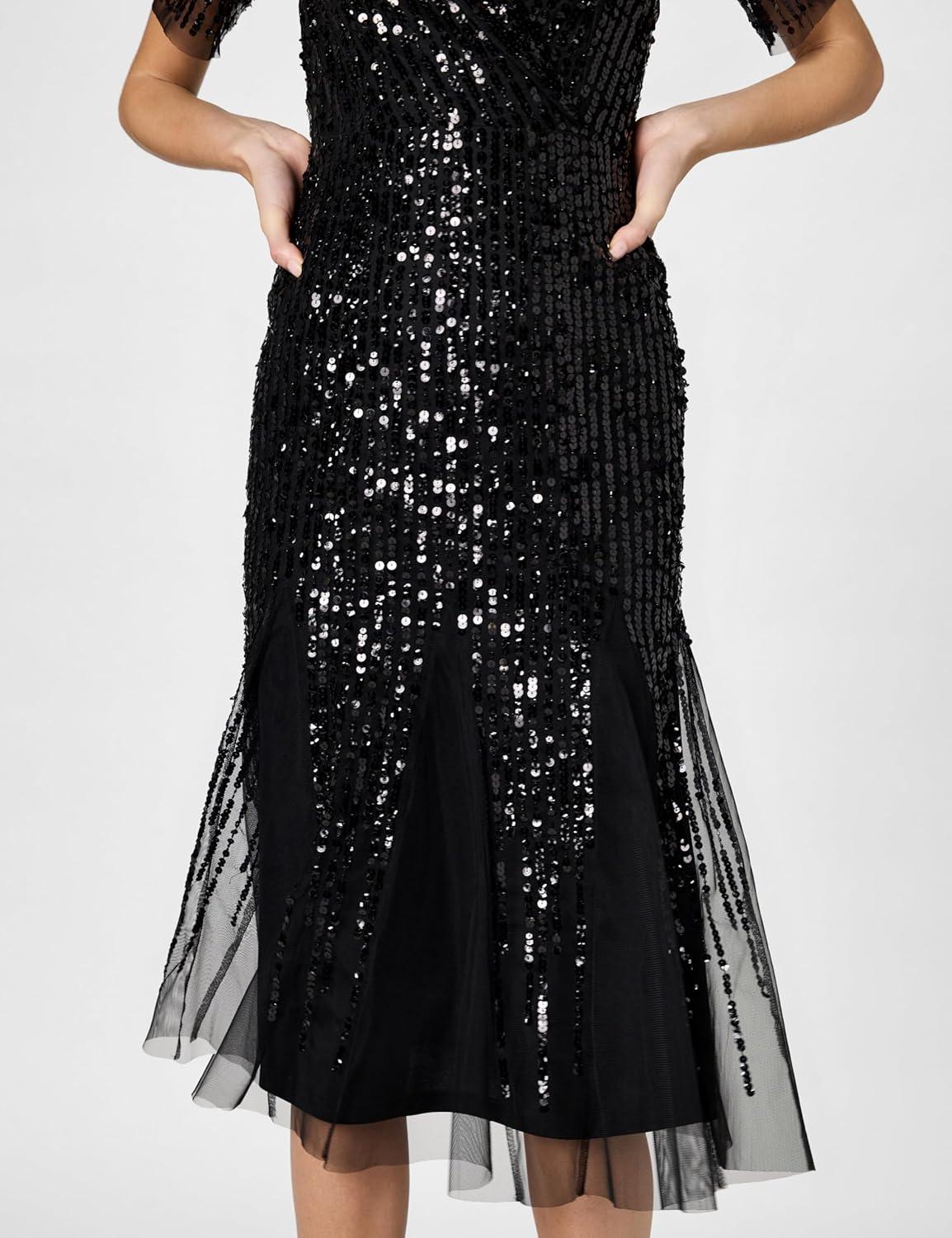 Adrianna Papell Women’s Beaded Midi Dress(Black Multi)
