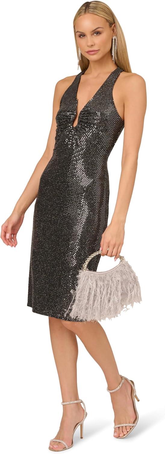 Adrianna Papell Women’s Sequin Knit Halter Dress(Black)