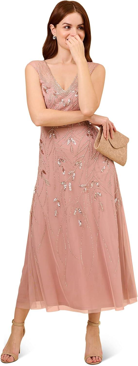Adrianna Papell Womens Beaded Ankle Dress(Candied Ginger)