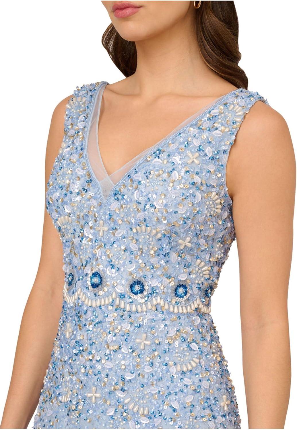 Adrianna Papell Womens Beaded Ankle Dress(Elegant Sky)