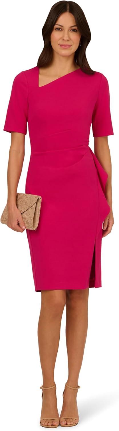 Adrianna Papell Women’s Draped Knit Crepe Dress(Brilliant Rose)