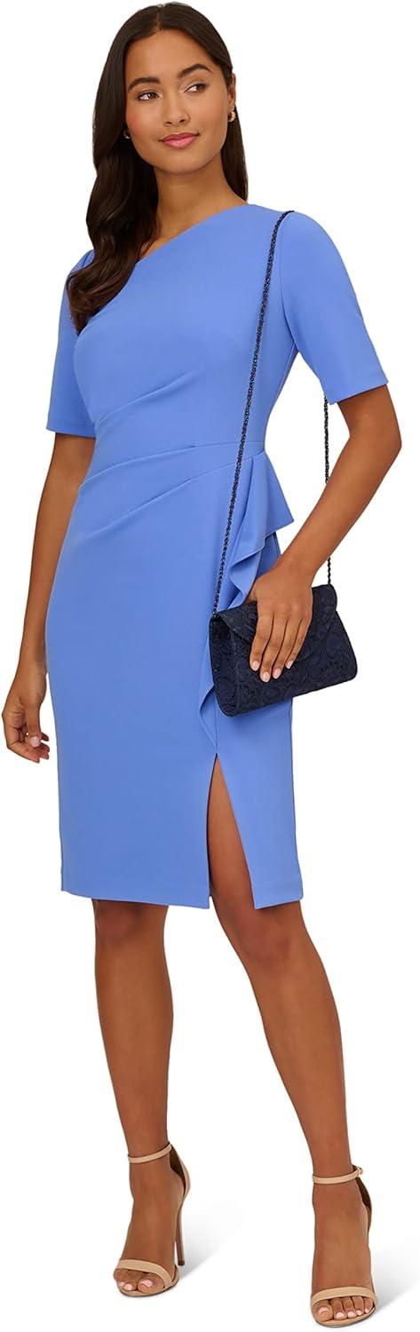 Adrianna Papell Women’s Draped Knit Crepe Dress(Precious Periwinkle)