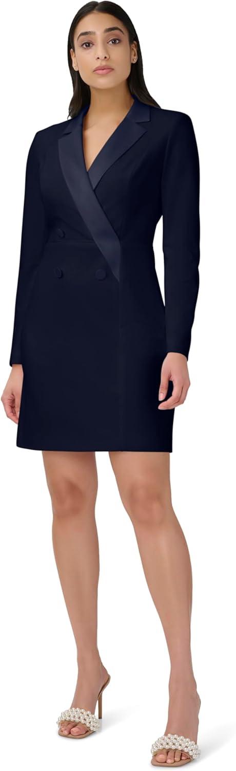 Adrianna Papell Women’s Crepe Tuxedo Sheath Dress(Midnight)