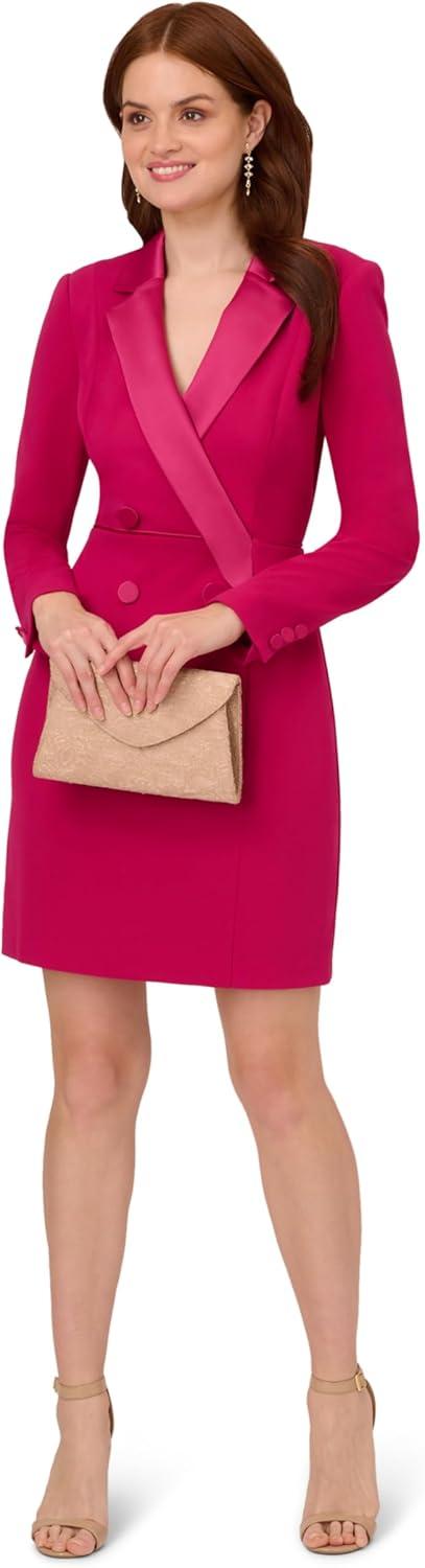 Adrianna Papell Women’s Crepe Tuxedo Sheath Dress(Rich Magenta)