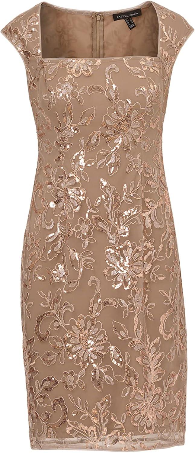 Adrianna Papell Women’s Floral Sequin Sheath Dress(Cashmere)