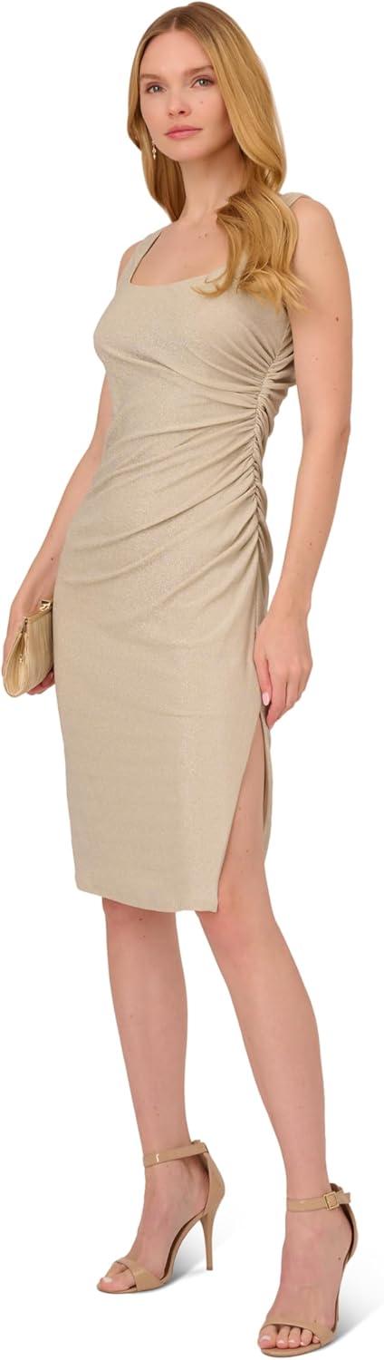 Adrianna Papell Women’s Metallic Knit Midi Dress(Champagne)