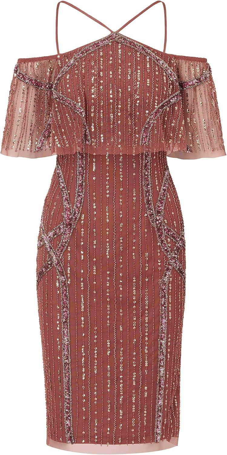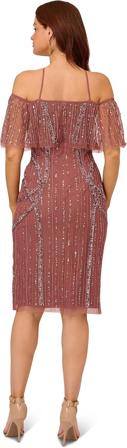 Adrianna Papell Women’s Beaded Off The Shoulder Dress(Plum)