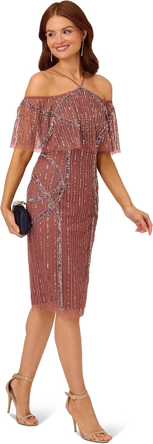 Adrianna Papell Women’s Beaded Flutter Sleeve Dress(Midnight Multi)