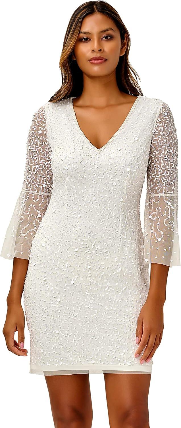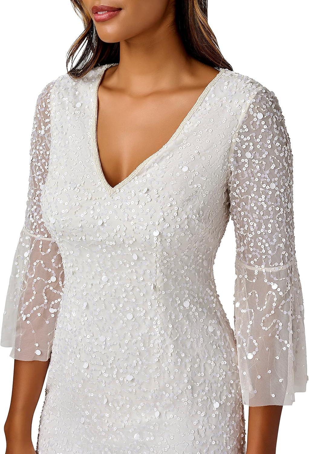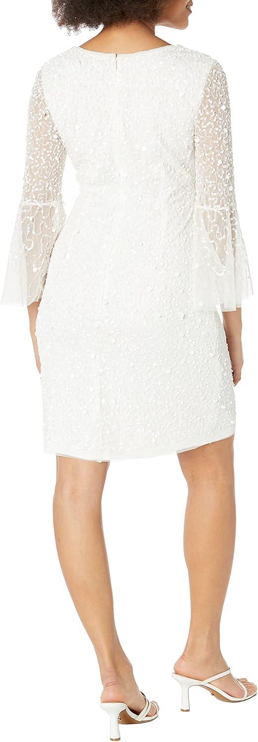 Adrianna Papell Women’s Beaded Sequin Bell Sleeve DRS(Ivory)