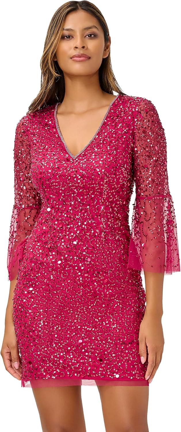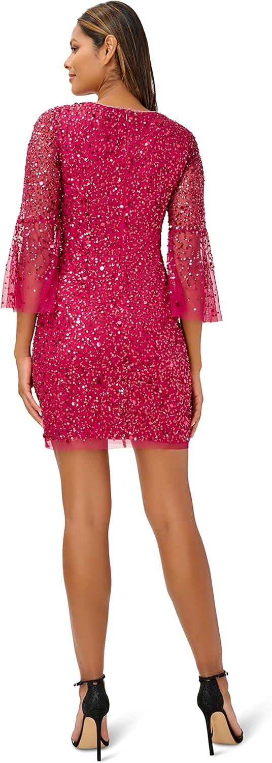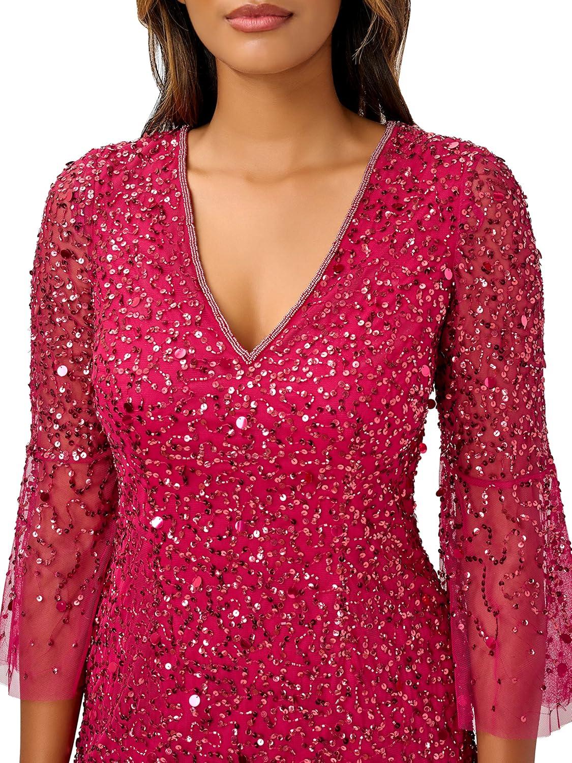 Adrianna Papell Women’s Beaded Sequin Bell Sleeve DRS(Raspberry Wine)