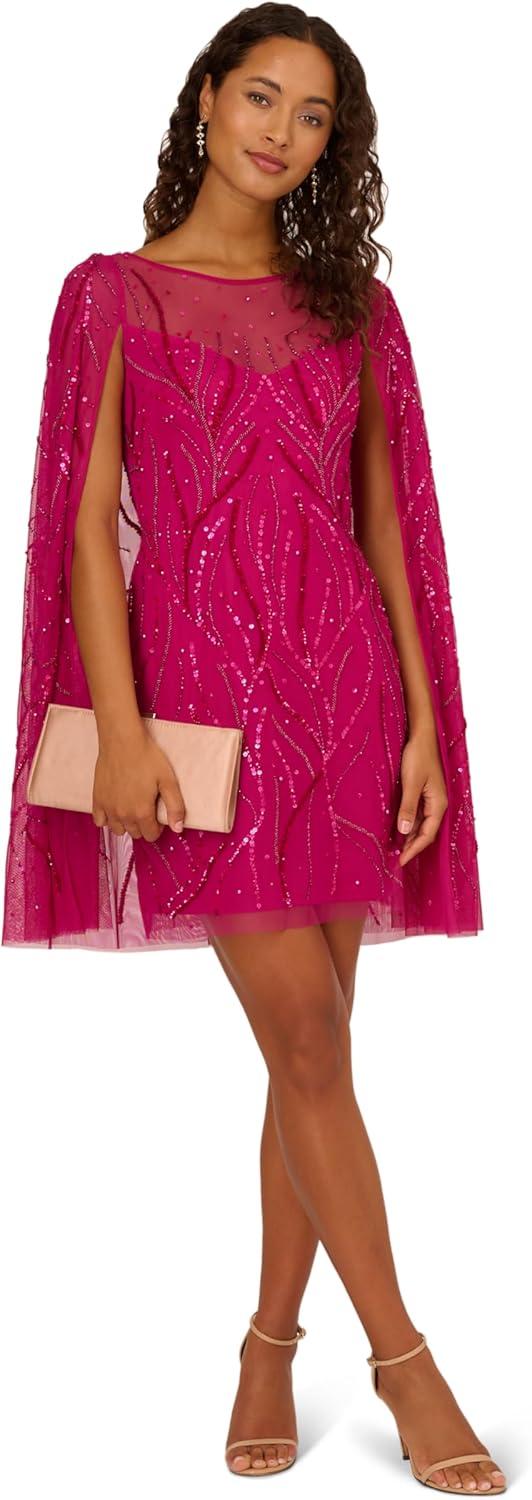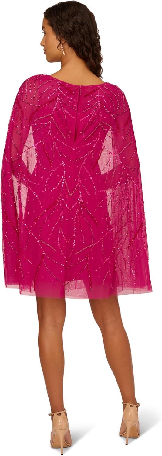 Adrianna Papell Women’s Beaded Short Cape Sleeve Dress(Hot Orchid)