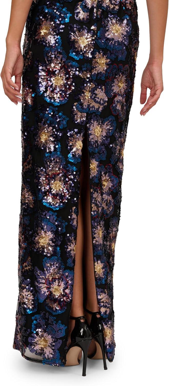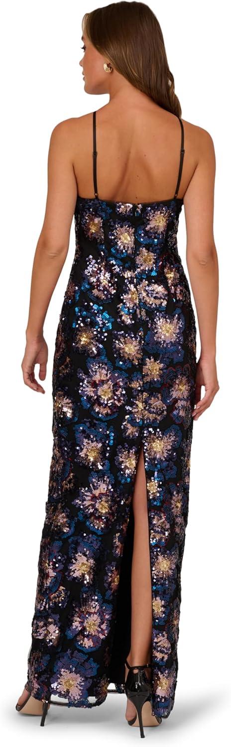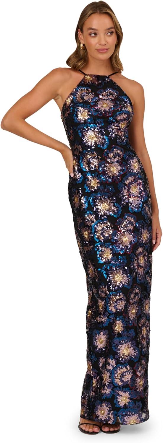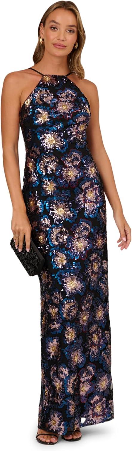 Adrianna Papell Halter Neck Sequin Floral Gown