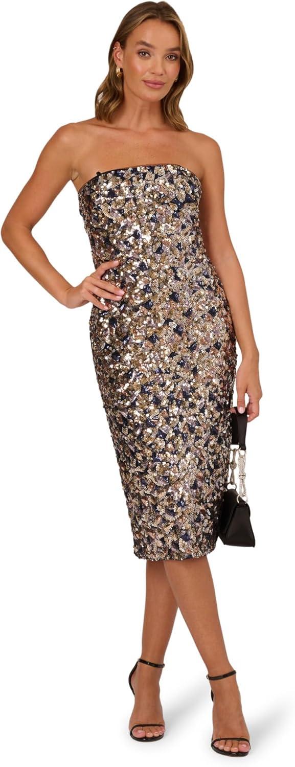 Adrianna Papell Strapless Sequin Midi Sheath Dress