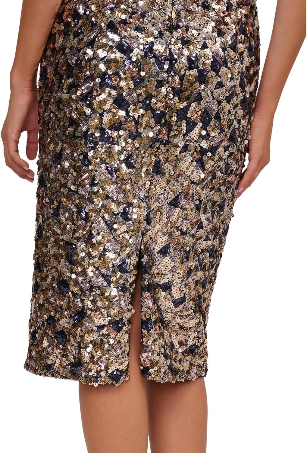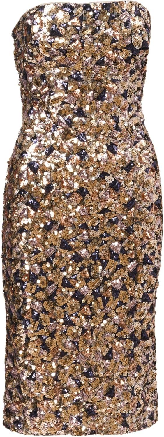 This strapless midi dress captivates with intricate sparkling detail in a sleek knee length sheath silhouette. Fully adorned in colorful sequins, it shimmers with multidimensional light for a striking effect. Classic and utterly glamorous, this cocktail dress is the perfect look for your next special occasion or big night out.