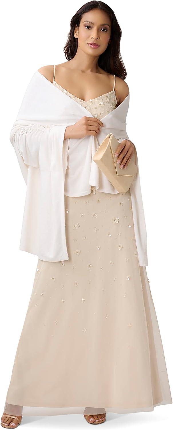 Adrianna Papell Womens 3D Beaded Floral Gown(Cashmere)